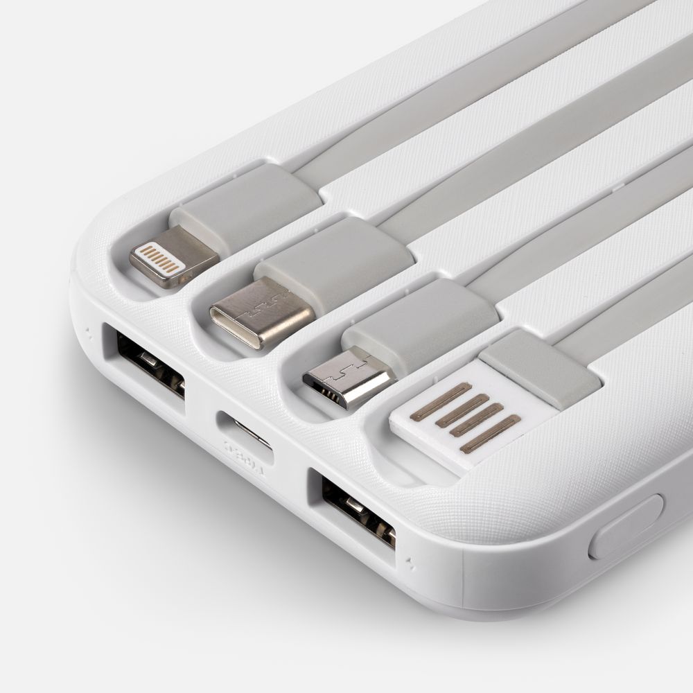 Интересная особенность аккумуляторов Omni — совершенно автономная конструкция: встроенные кабели позволяют заряжать как самые разные электронные устройства, так и сам аккумулятор. Если же смартфон поддерживает беспроводной заряд, то кабель вообще не нужен. Наглядный индикатор заряда в процентах.