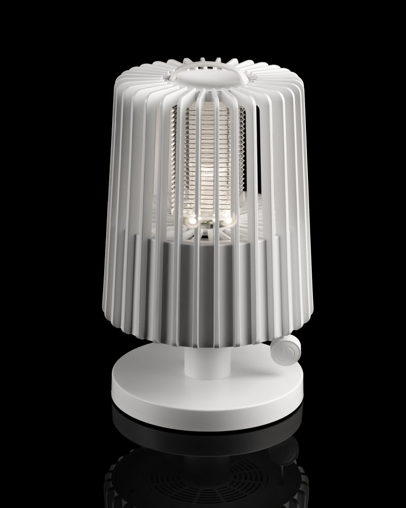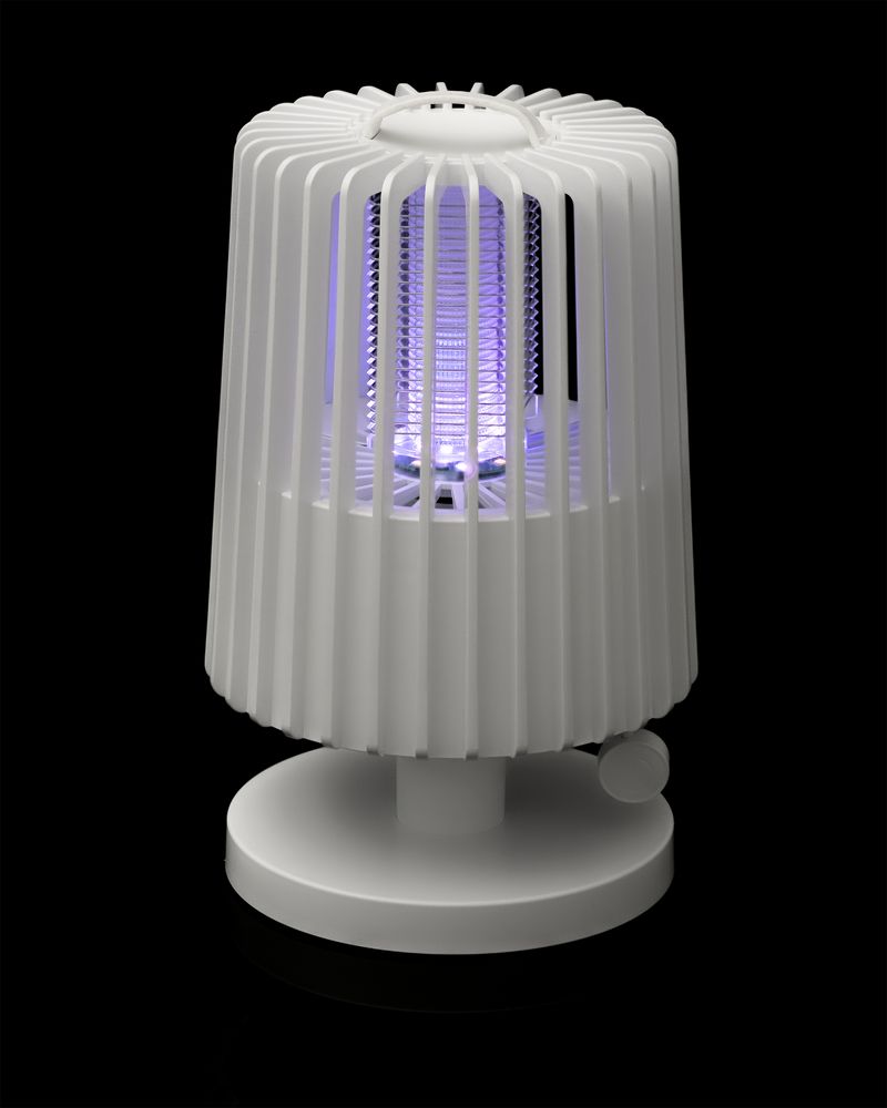 Лампа Insecto — элегантный настольный светильник с регулируемой яркостью, который легким движением руки превращается в приманку, уничтожающую насекомых электрическим разрядом.