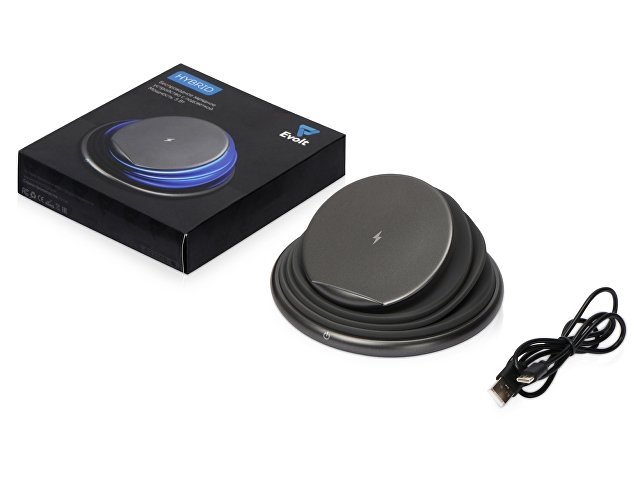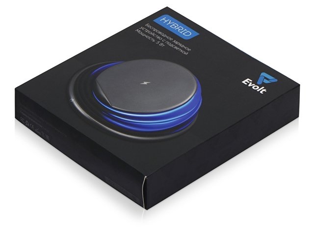 Hybrid - это беспроводная зарядная станция и ночник в одном устройстве. Ночник имеет 4 цвета и 2 режима подсветки на выбор, а также - регулируемое положение. Гаджет изготовлен из пластика, светящаяся часть - из силикона. Актуальный подарок для ценителей необычных гаджетов. Тампопечать (1 цвет (цветные изделия)) на данный товар осуществляется бесплатно. Оплачивается только настройка оборудования в размере 4500 рублей на весь тираж.