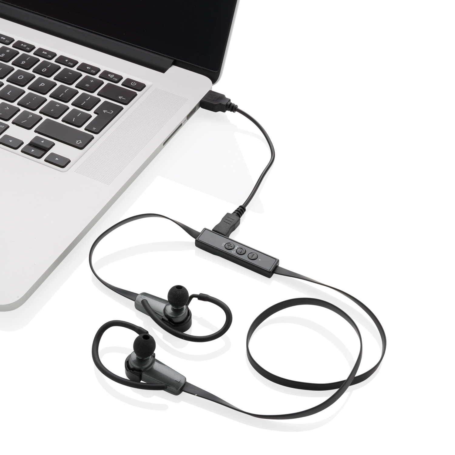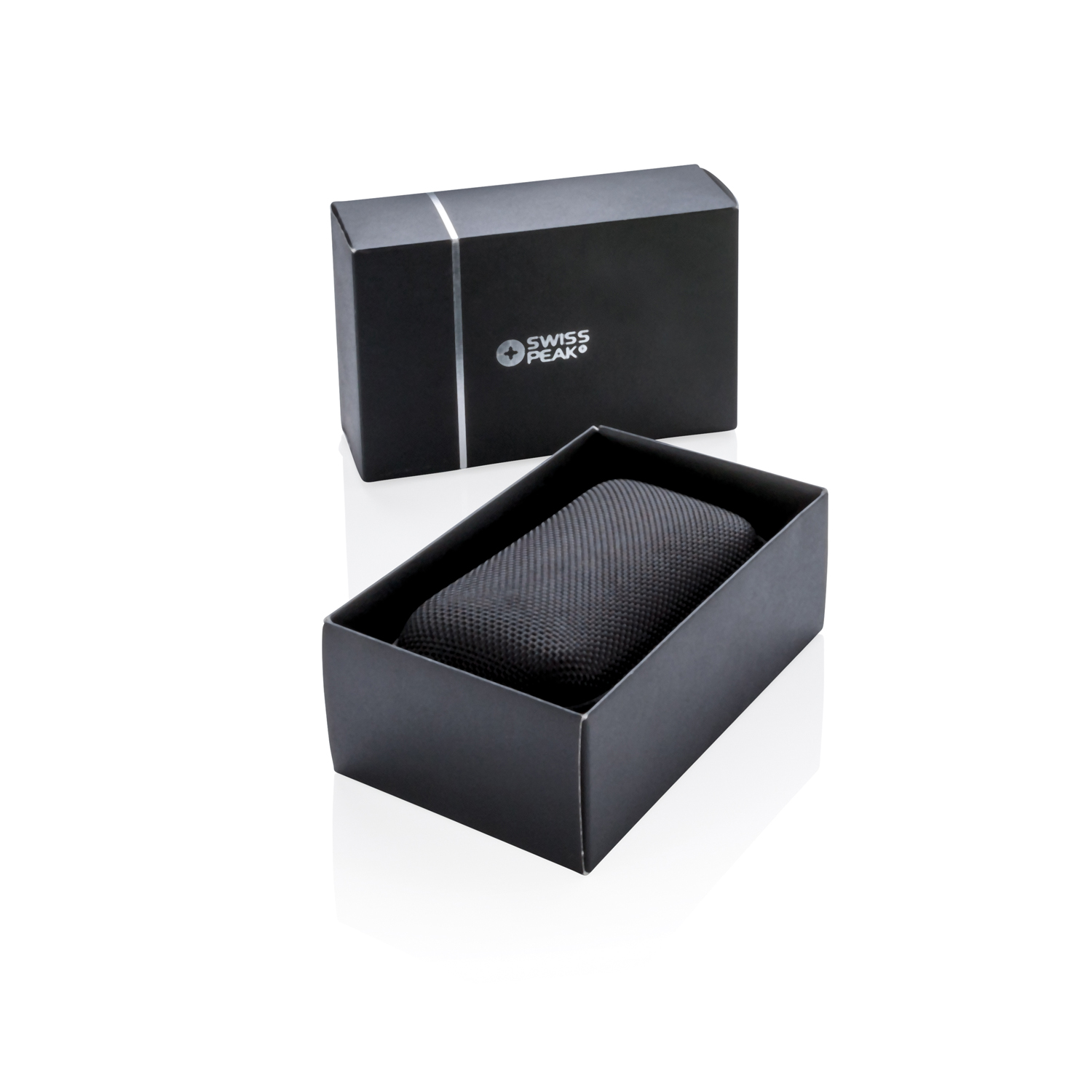 Замена артикула P326.392. Беспроводные наушники «капельки» Swiss Peak со стандартом подключения BT 4.0 – идеальный вариант для использования на улице или во время занятий спортом. Износостойкие наушники в корпусе из ABS-пластика и не спутывающийся провод из TPE с защитой от пота и влаги позволяют наслаждаться любимой музыкой в любых условиях. Время воспроизведения без подзарядки составляет до 4 часов. Полная зарядка аккумулятора занимает не более одного часа. В комплект входят две дополнительные насадки для наушников разных размеров. Наушники поставляются в стильной сумке Swiss Peak и подарочной коробке.