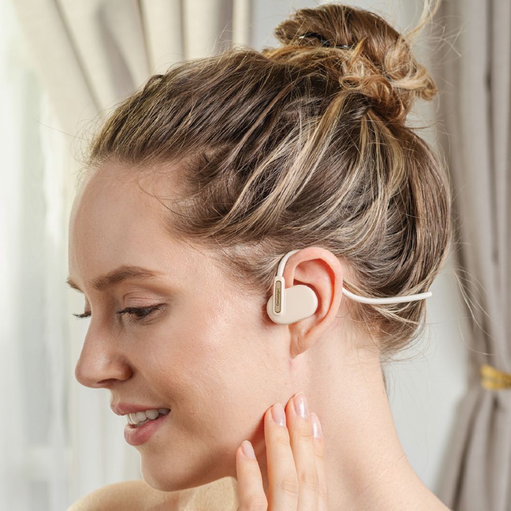 Беспроводные наушники с зашейной дужкой — удобно сидят и не выпадают из ушей. Направленные динамики обеспечивают высокое качество звука. Лучше всего подходят для работы в офисе и прослушивания фоновой музыки.