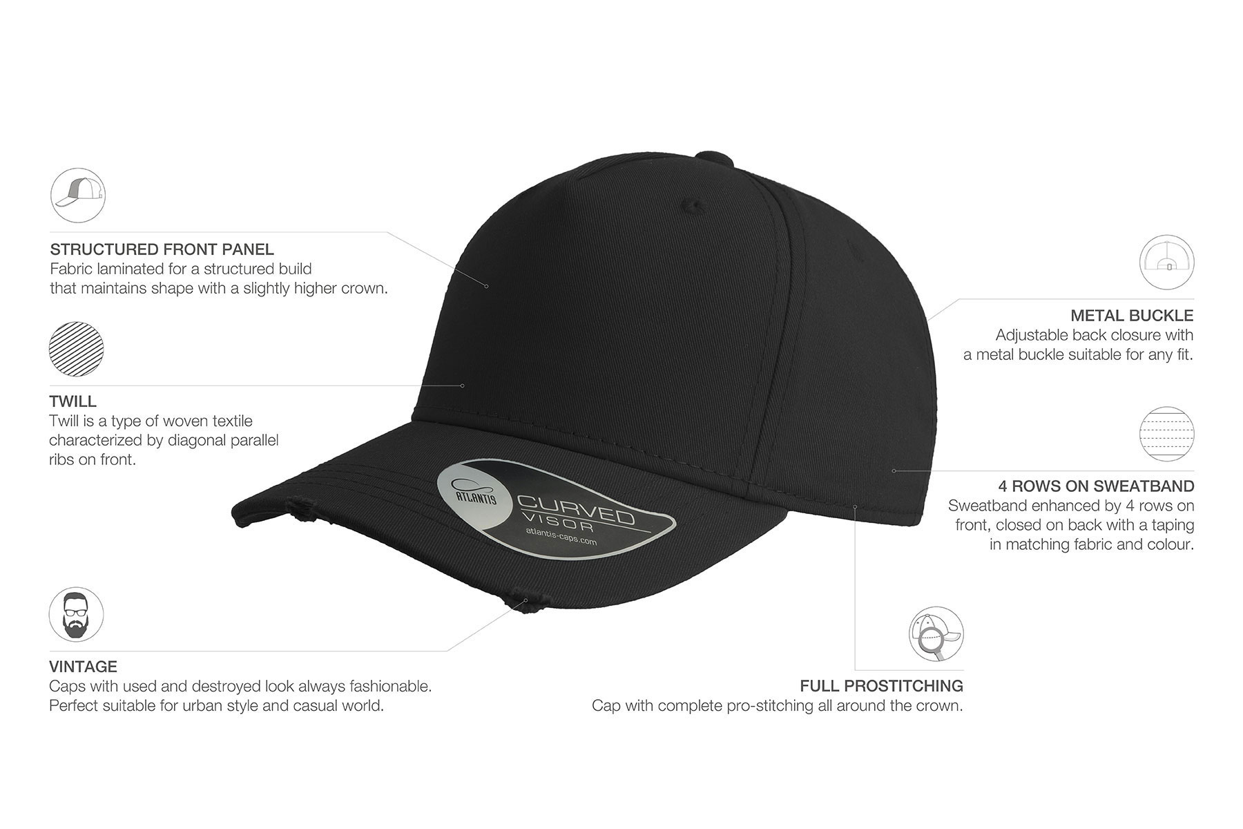 Бейсболка CARGO выполнена в неизменно популярном винтажном стиле. Рваные края изогнутого козырька придают ей шарм и уникальность. CARGO изготовлена из дышащего и прочного хлопка с плетением твил. Конструкция из 5 панелей и регулируемый ремешок обеспечивают удобную посадку на голове. Мягкость волокон обеспечивается стиркой изделия после его изготовления. Площадь фронтальной панели отлично подходит для вышивки и нанесения логотипа.
