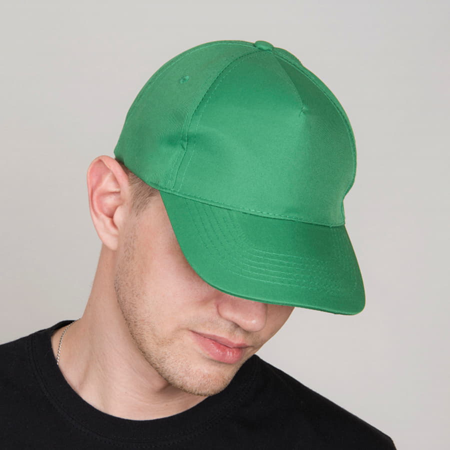 Жесткий козырек, 4 вышитых люверса, 5 клиньев без лобового шва, застёжка-липучка.