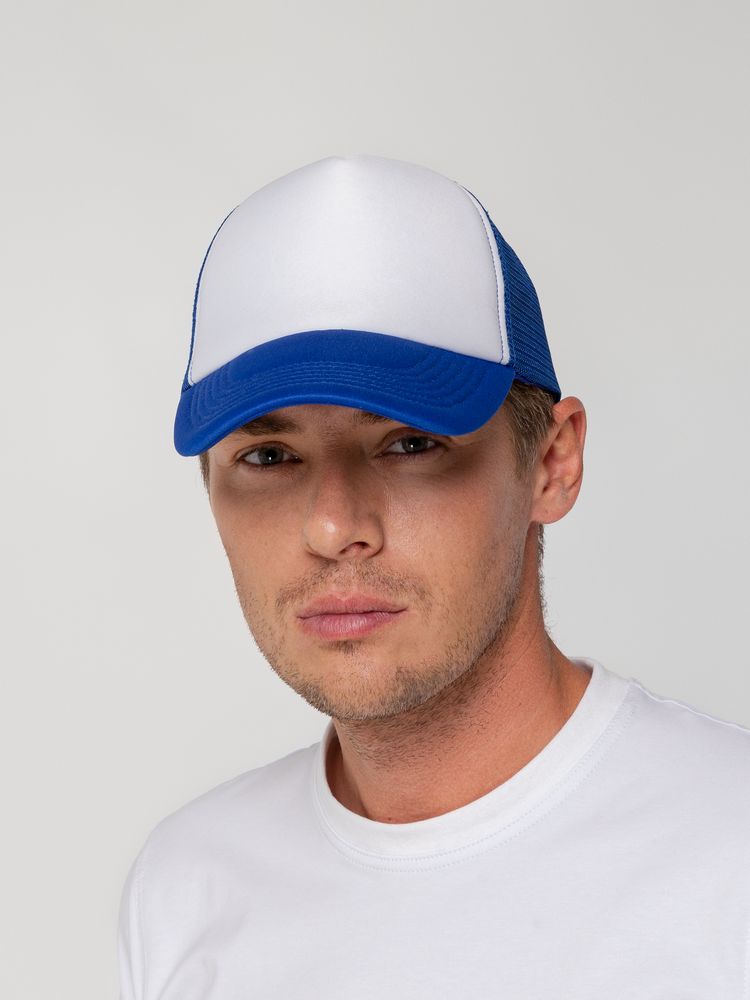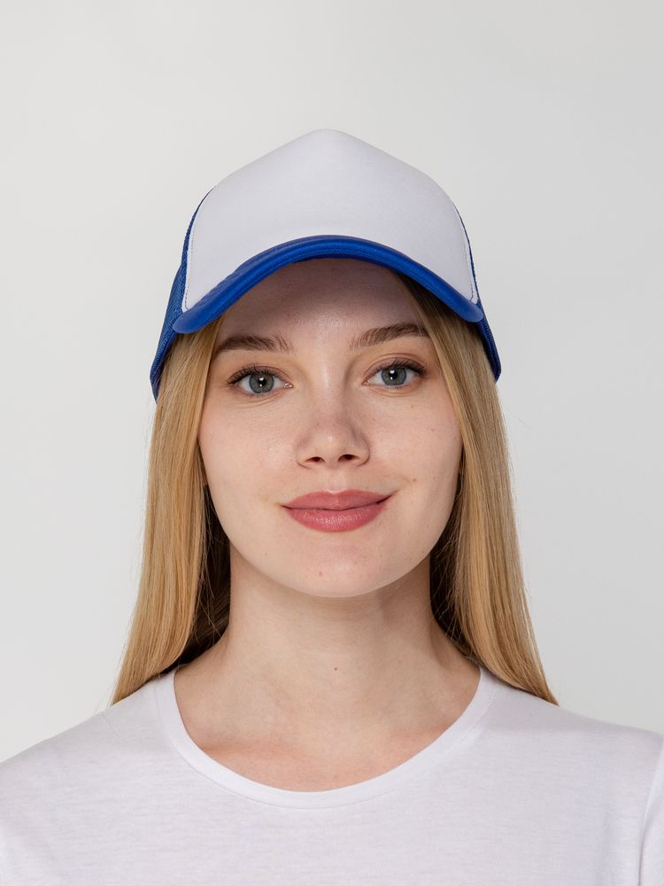 Стандартная модель с 5 клиньями без лобового шва в нестандартном исполнении. Передний клин и козырек выполнены из полиэстера с наполнителем из поролона, боковые и задние клинья — из сетки. Размер регулируется с помощью пластиковой застежки.