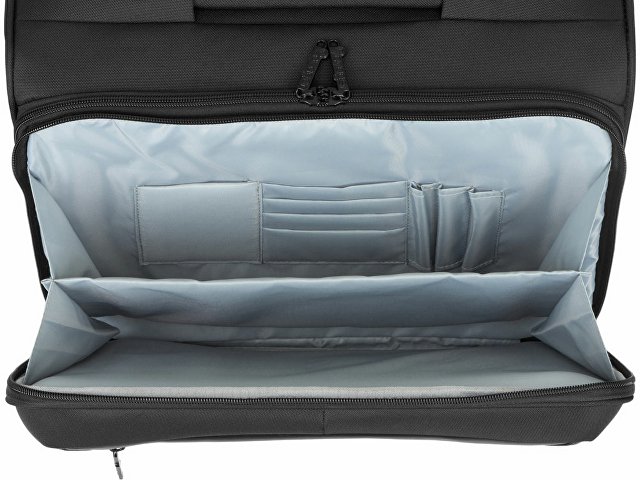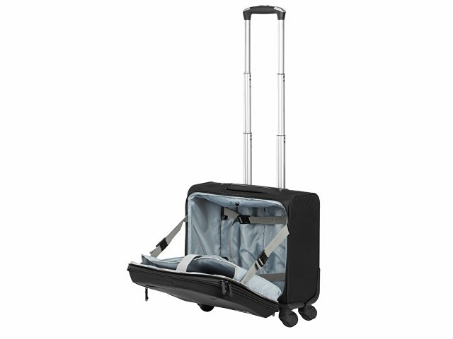 Бизнес-чемодан в лаконичном дизайне с шильдом под нанесение вашего логотипа. Удобен для командировок и деловых поездок благодаря наличию 2х отделений для ноутбука, одежды и карманов для бумаг.