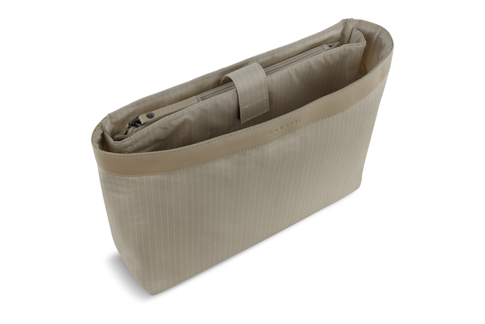 Коллекция отличается съемным внутренним чехлом-органайзером, который есть в комплекте в каждой модели. Уникальный паттерн bugatti «елочка» на чехлах-органайзерах и внутренней подкладке завершает эксклюзивный образ. В дополнение к черному и бежевому цветам LUNA также доступна в пудровом цвете.