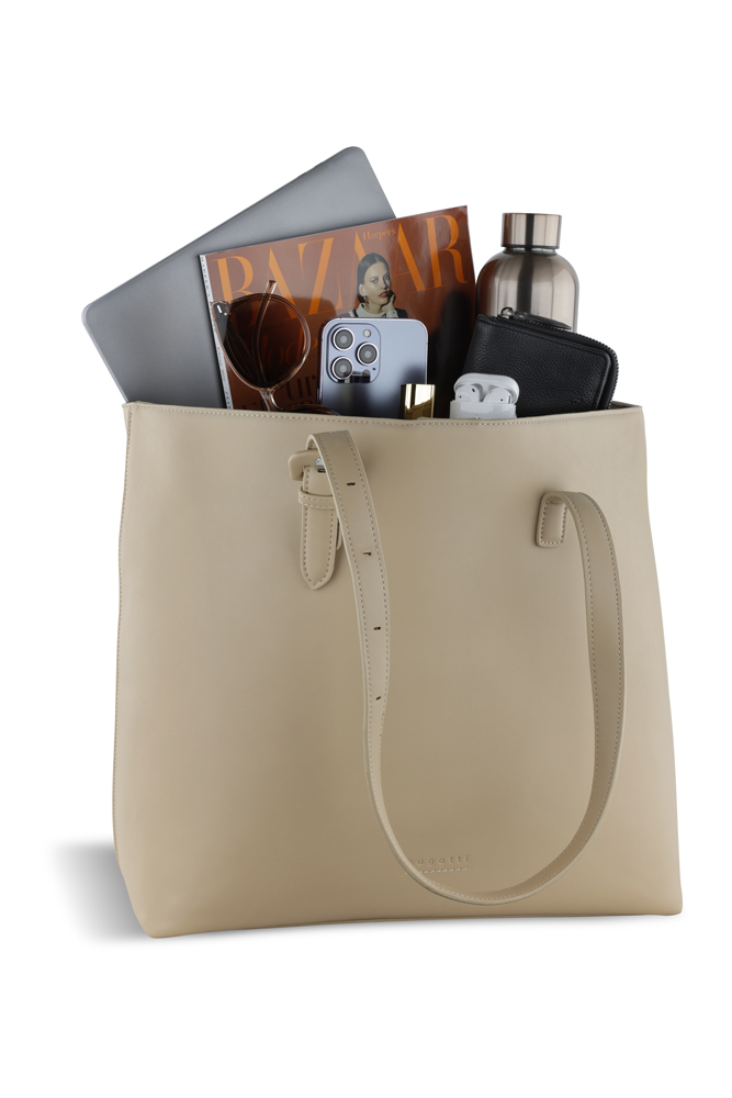 Бизнес-шоппер женский наплечный BUGATTI Luna, бежевый, полиуретан, 47 х 18 х 34 см
