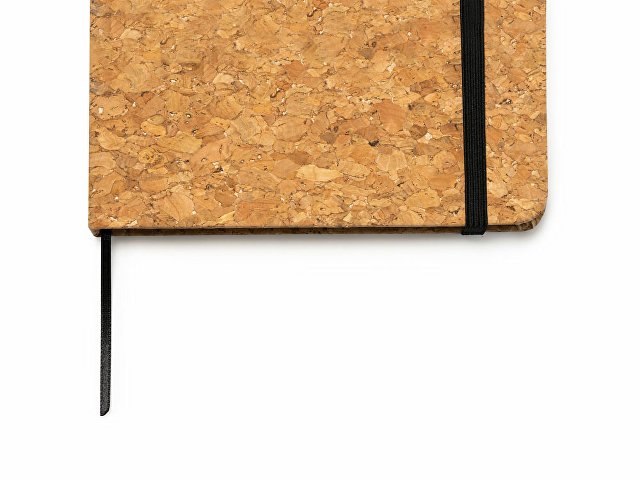 Блокнот формата А5 в твердой обложке из натуральной пробки на резинке с закладкой. 80 листов. Трафаретная печать (1 цвет (цветные изделия)) на данный товар осуществляется бесплатно. Оплачивается только настройка оборудования в размере 10000 рублей на весь тираж.