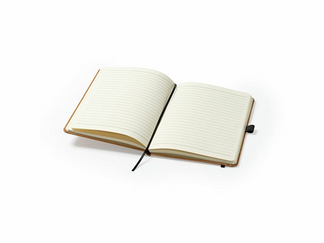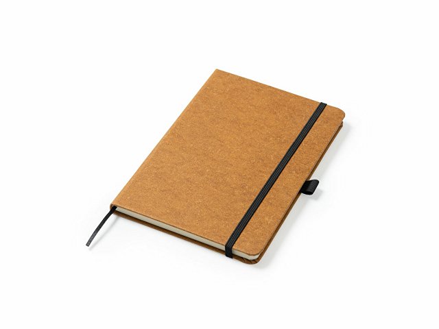 Блокнот формата А5 с жесткой обложкой из переработанной кожи. Закладка и резинка. 100 листов.