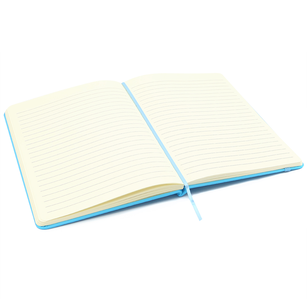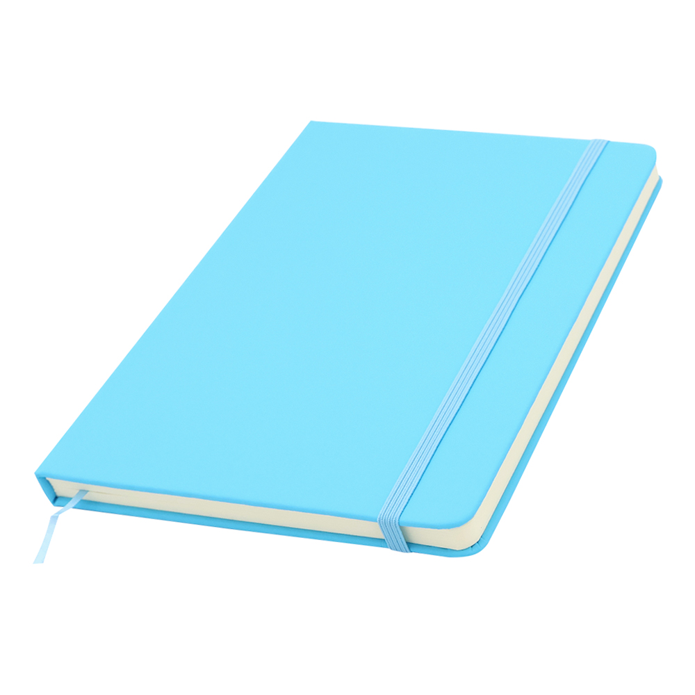 Блокнот формата А5 с твердым покрытием из PU-материала с имитацией рисунка кожи, с эластичной застежкой для закрытия и текстильной закладкой в цвет блокнота, 192 страницы, плотность 70г/м, страницы с черными линиями. Цвет по PANTONE® (максимально приближен): 186C.