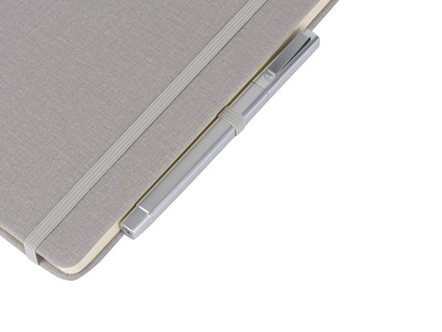 Лаконичный дизайн, приятная на ощупь твердая обложка имеет фактуру ткани. В блокноте 160 линованных страниц кремового цвета с плотностью 80 г/м2, петля для ручки, лента-закладка и удобный карман для карточек и записок. Тиснение (Блинт) на данный товар осуществляется бесплатно. Оплачивается только настройка оборудования в размере 6200 рублей на весь тираж.