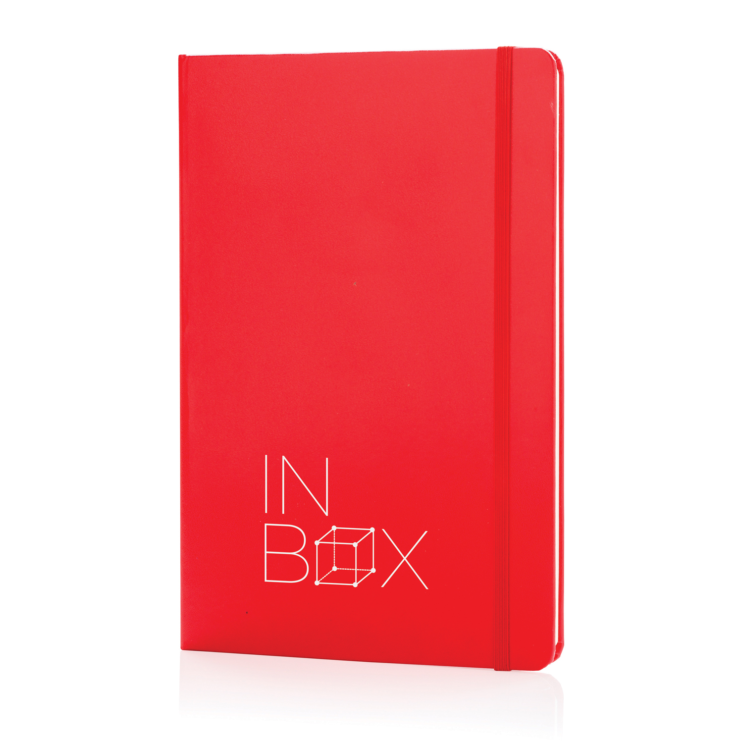 Блокнот для записей Basic в твердой обложке формата А5 на резинке с ляссе. 72 страницы, линованная бумага кремового цвета, плотностью 70 г/м2.