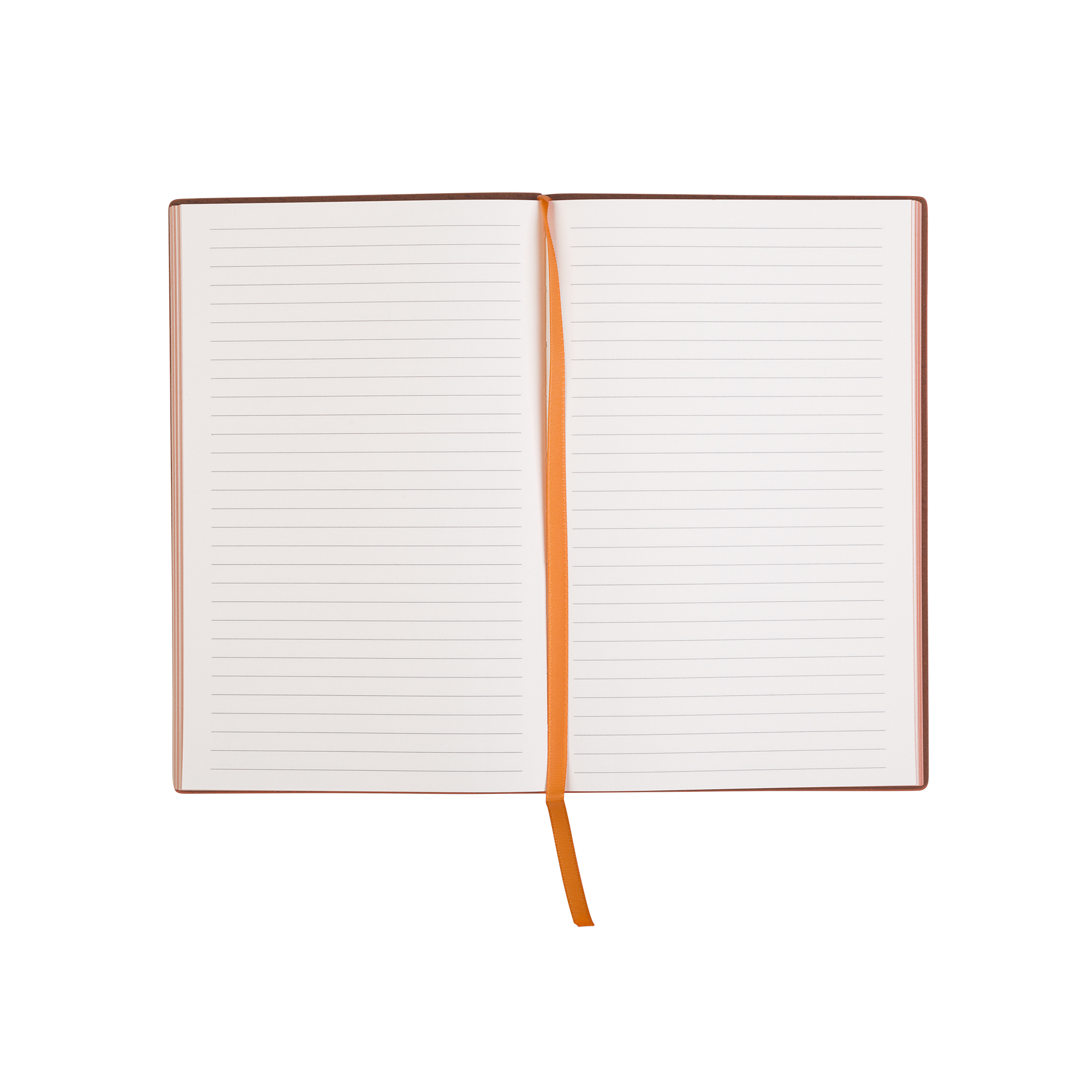 Главной особенностью дизайна блокнота является гибкая «трогательная» soft touch обложка, а также металлический корешок и срез блока в цвет обложки. Удобный А5 формат, компактный размер и лента-ляссе дополняют образ.
