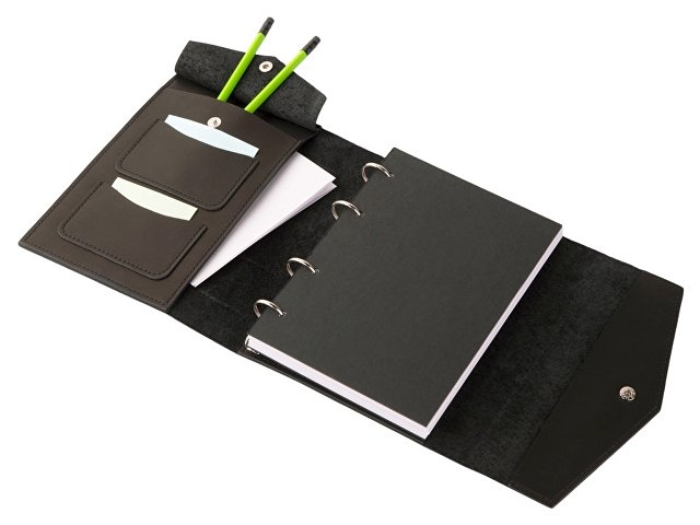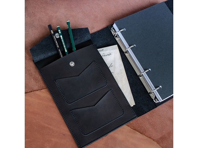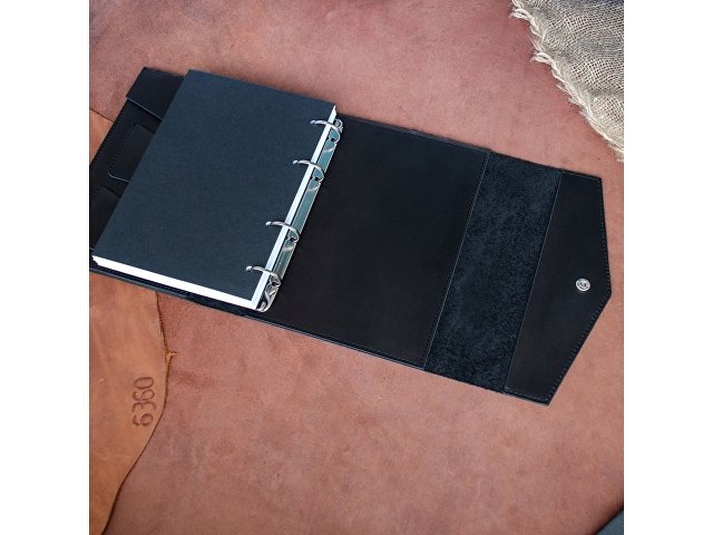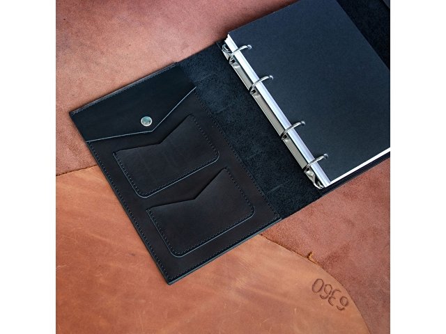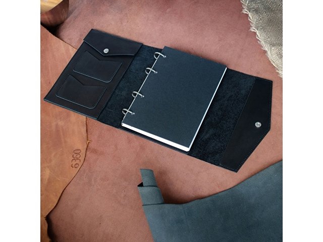 Кожаный блокнот на кольцах формата А5 со сменными блоками.
