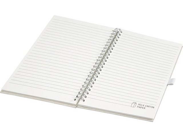 Блокнот на спирали формата A5 для заметок с 70 линованными листами плотностью 80 г/м², изготовленный из переработанных картонных коробок из-под молока (до 70%). Картонные коробки из-под молока собираются, сортируются, перерабатываются и превращаются в бумагу, таким образом действительно превращая мусор во что-то полезное.