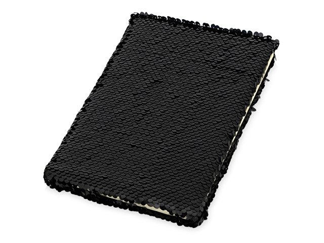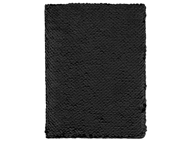 Модная обложка с пайетками черного цвета имеет скругленные углы.