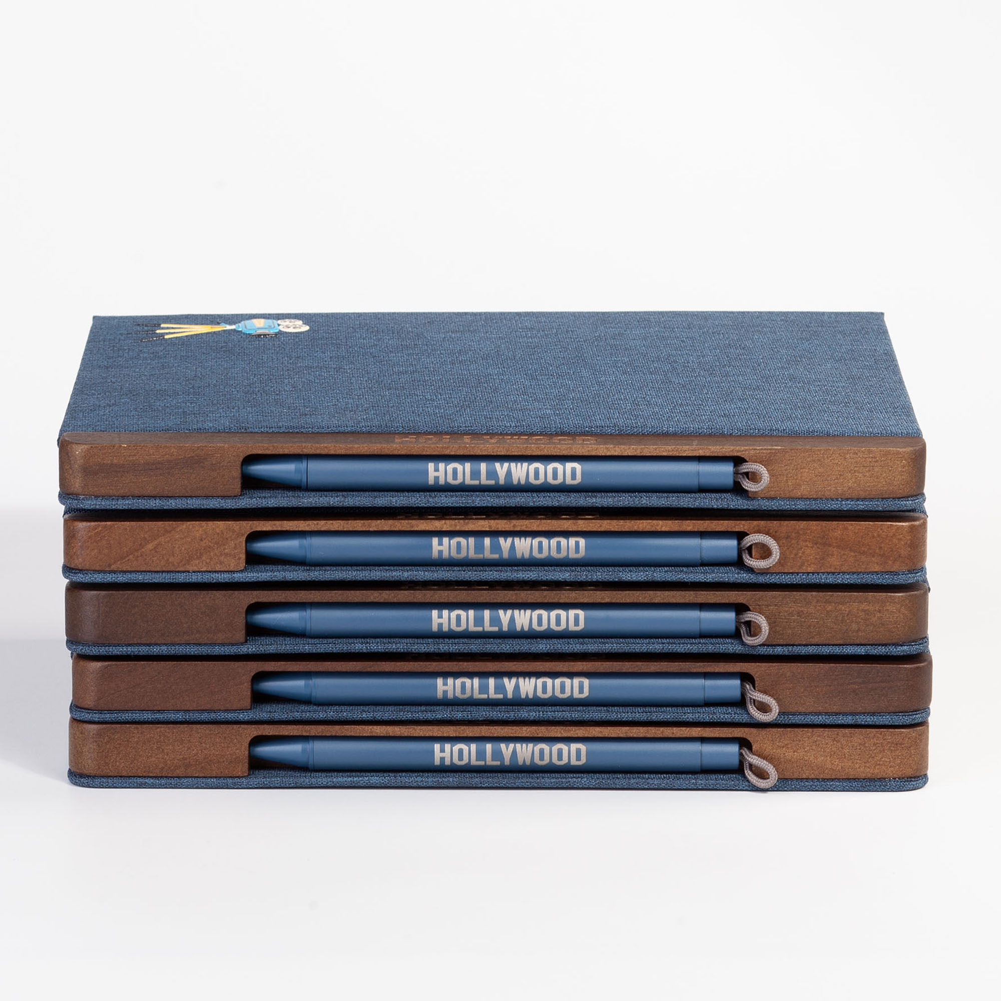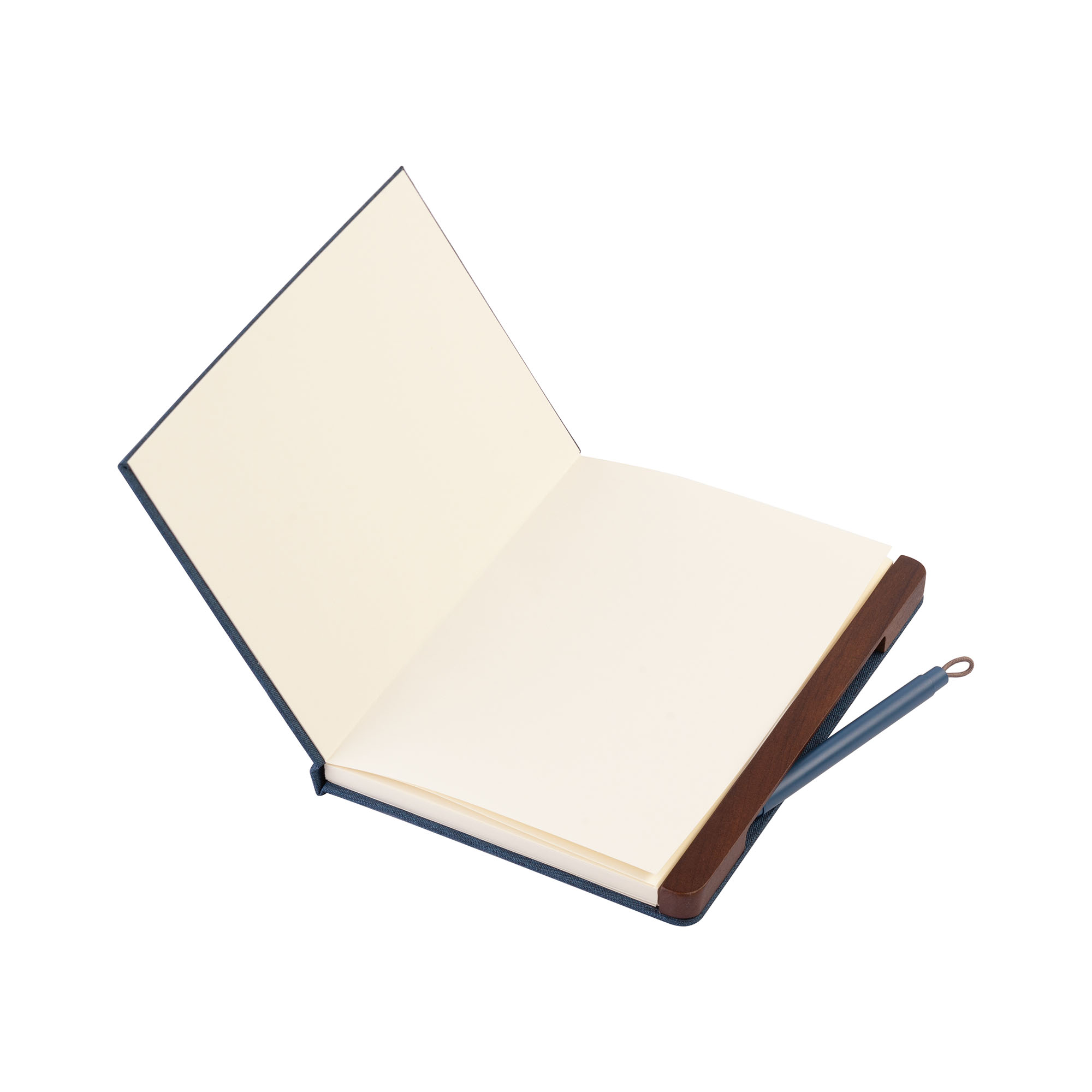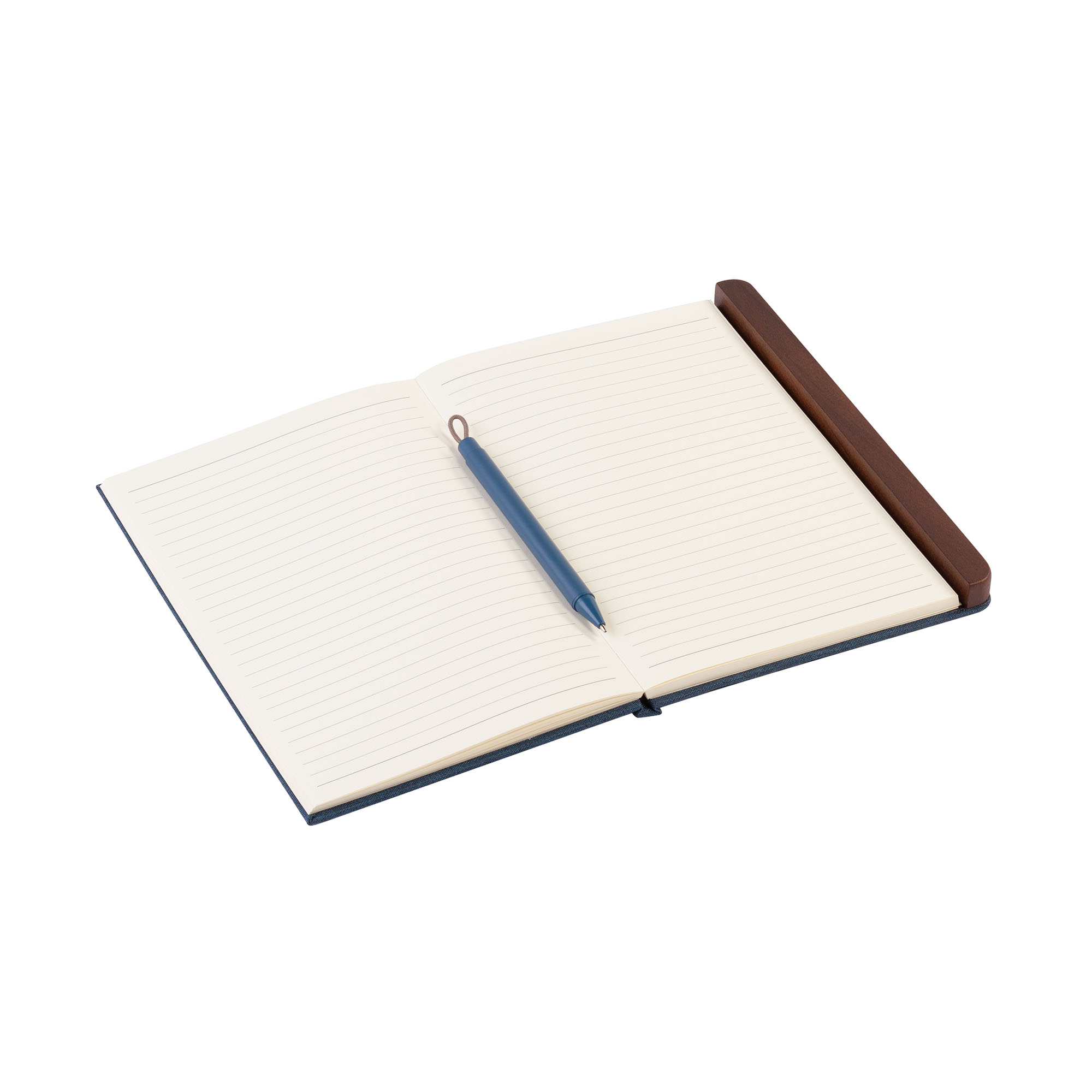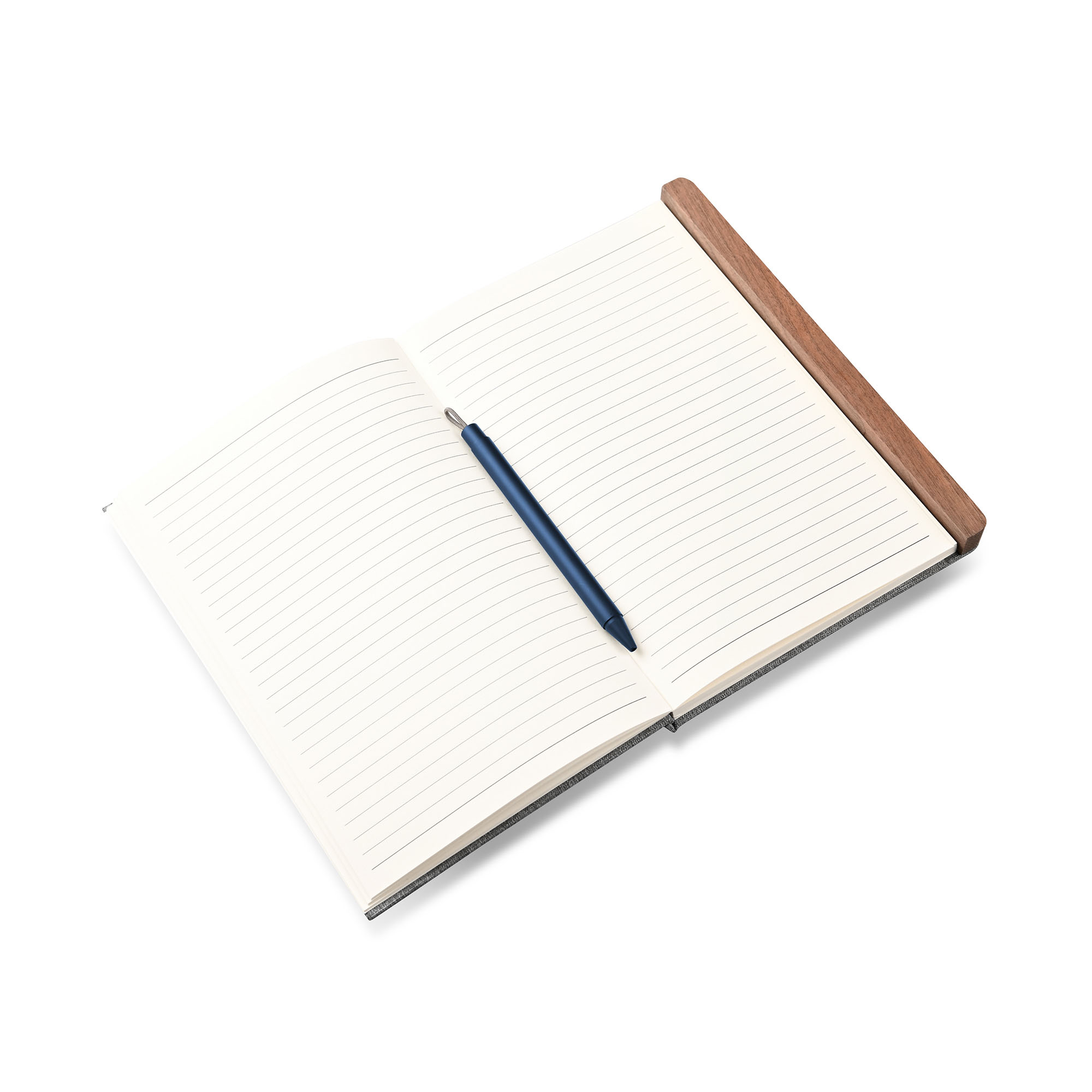 Невероятно оригинальная конструкция набора 2 в 1 - металлическая ручка скрыта и плотно держится в магнитном пенале из натурального дерева, закрепленном на задней обложке блокнота. При этом ручку легко извлечь, просто потянув за петельку на нажимной кнопке.