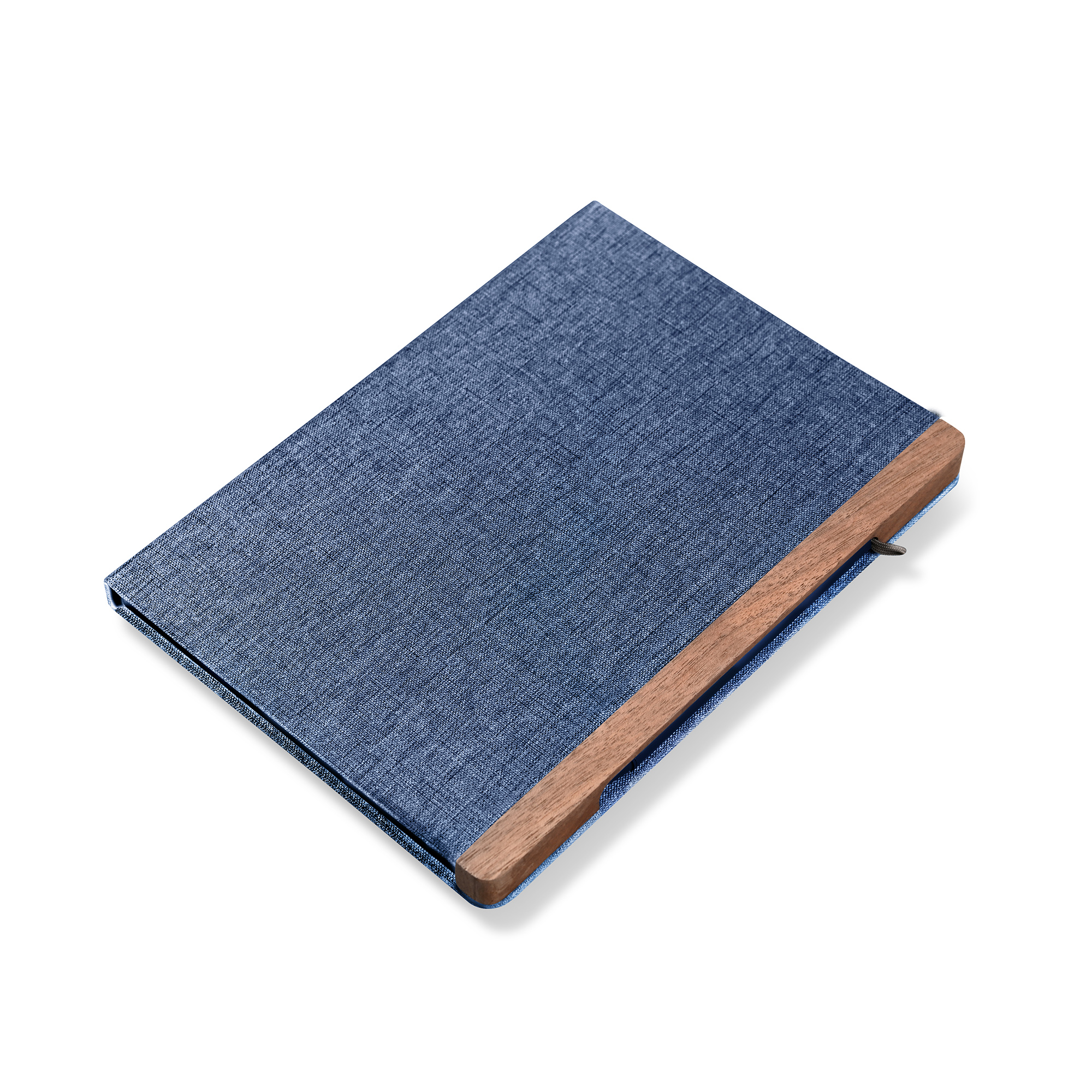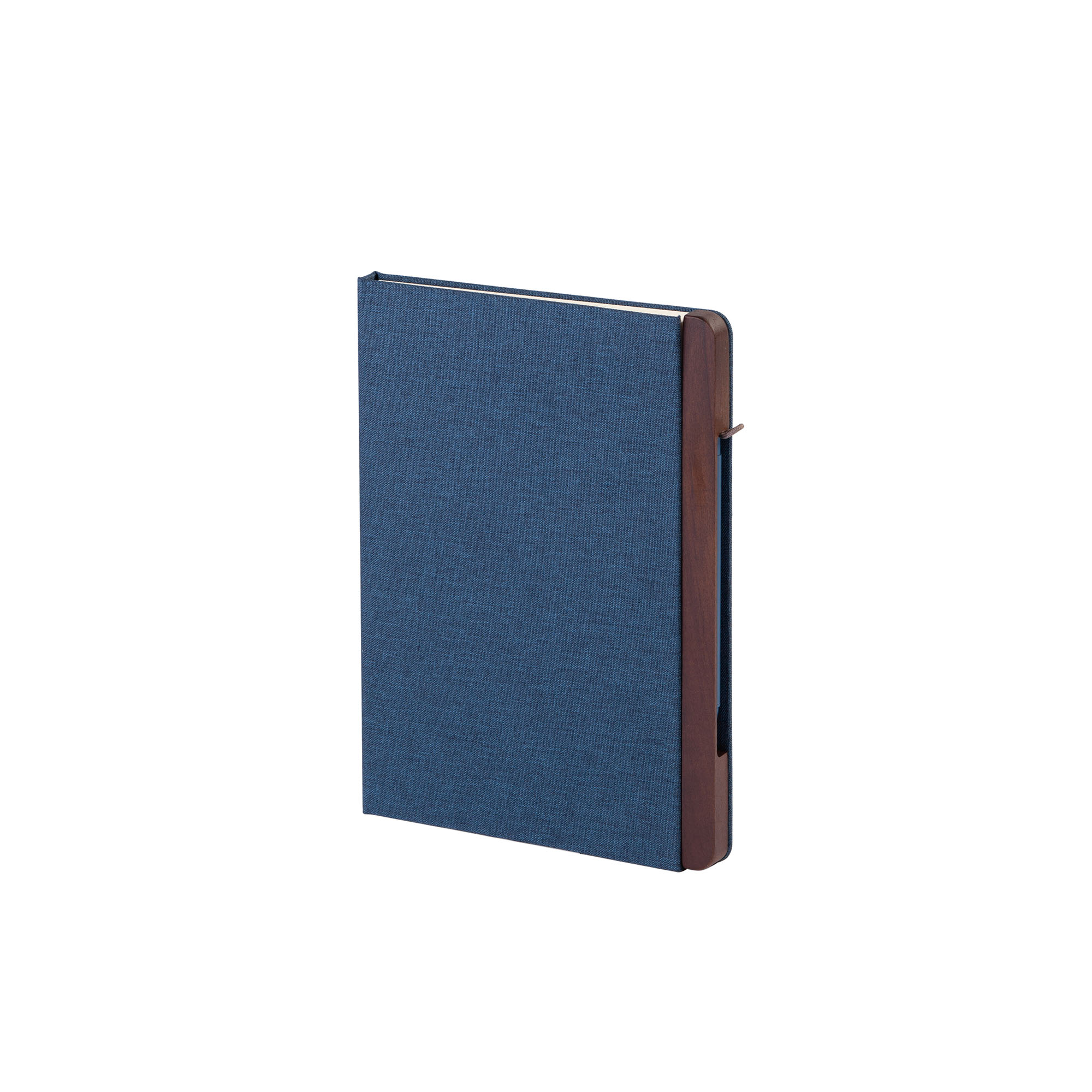 В блокноте 160 страниц в линейку кремовой бумаги плотностью 80 г/м2. Материал текстильной обложки изготовлен из переработанного (RPET) пластика. Ручка с синей пастой, стержень легко заменить.