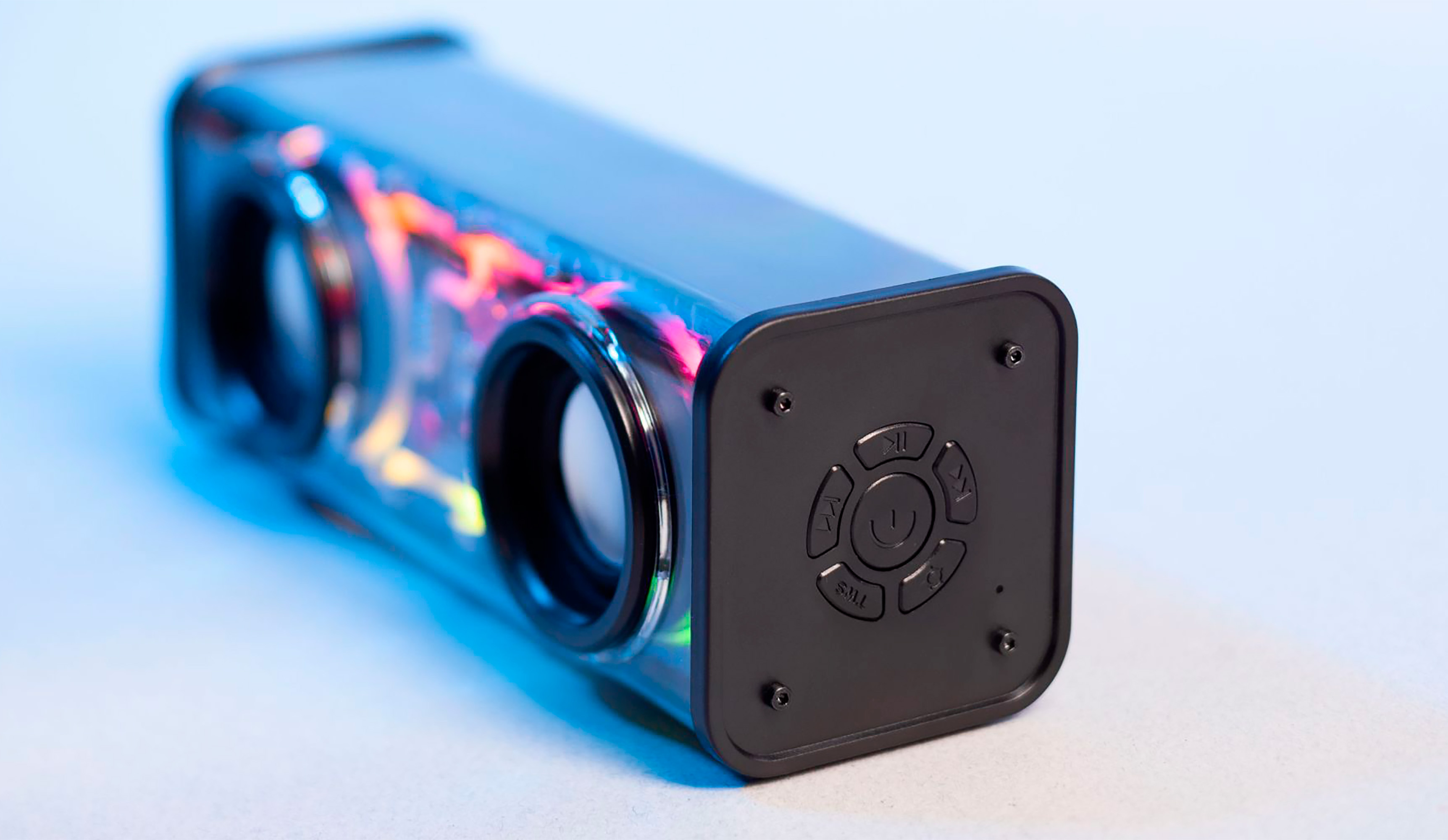 Bluetooth колонка "Buzz Light" 10Вт (2х5Вт) с разноцветной подсветкой-эквалайзером и прозрачным корпусом