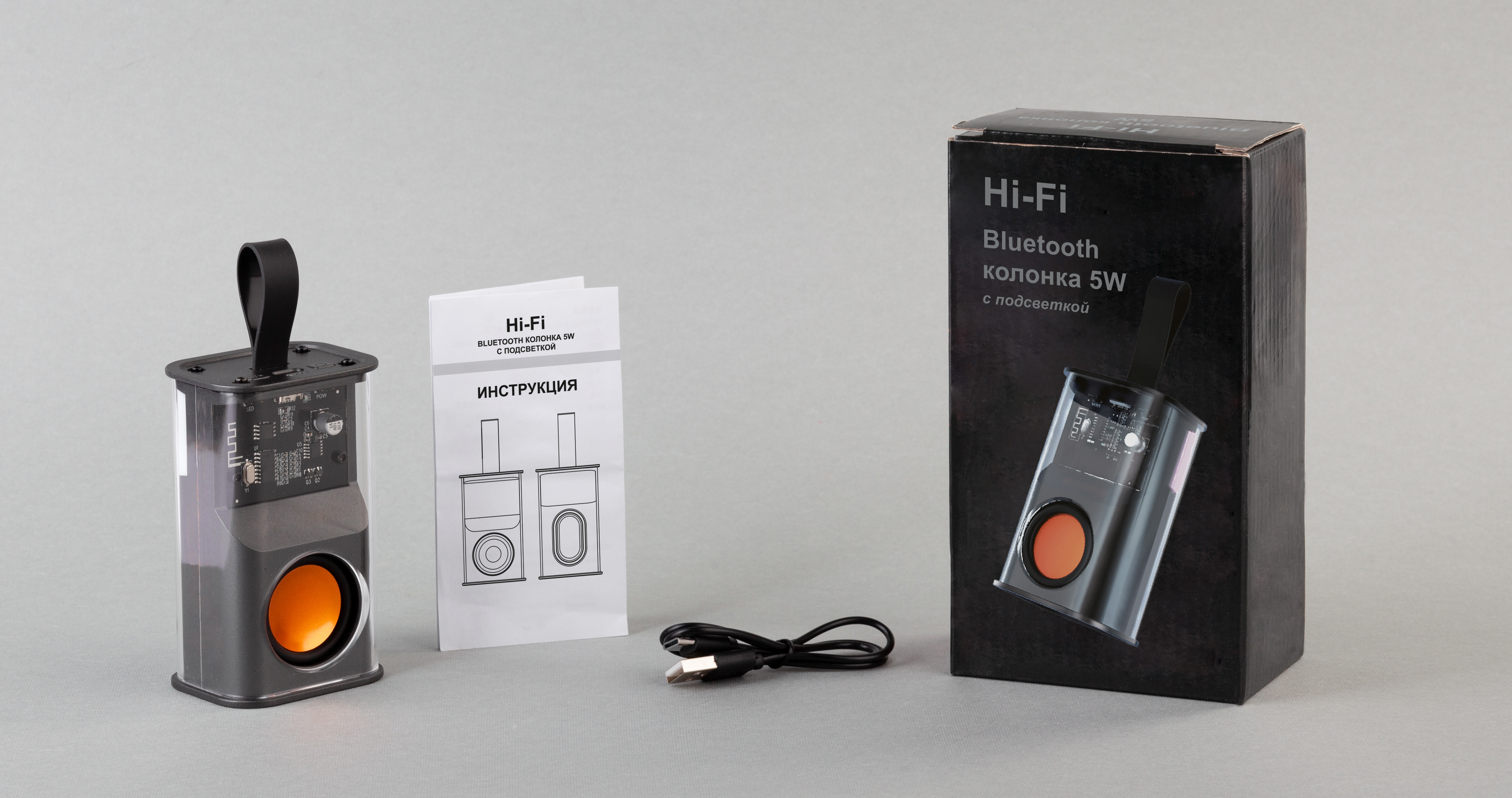 Bluetooth колонка "Hi-Fi" 5Вт с разноцветной подсветкой и прозрачным корпусом