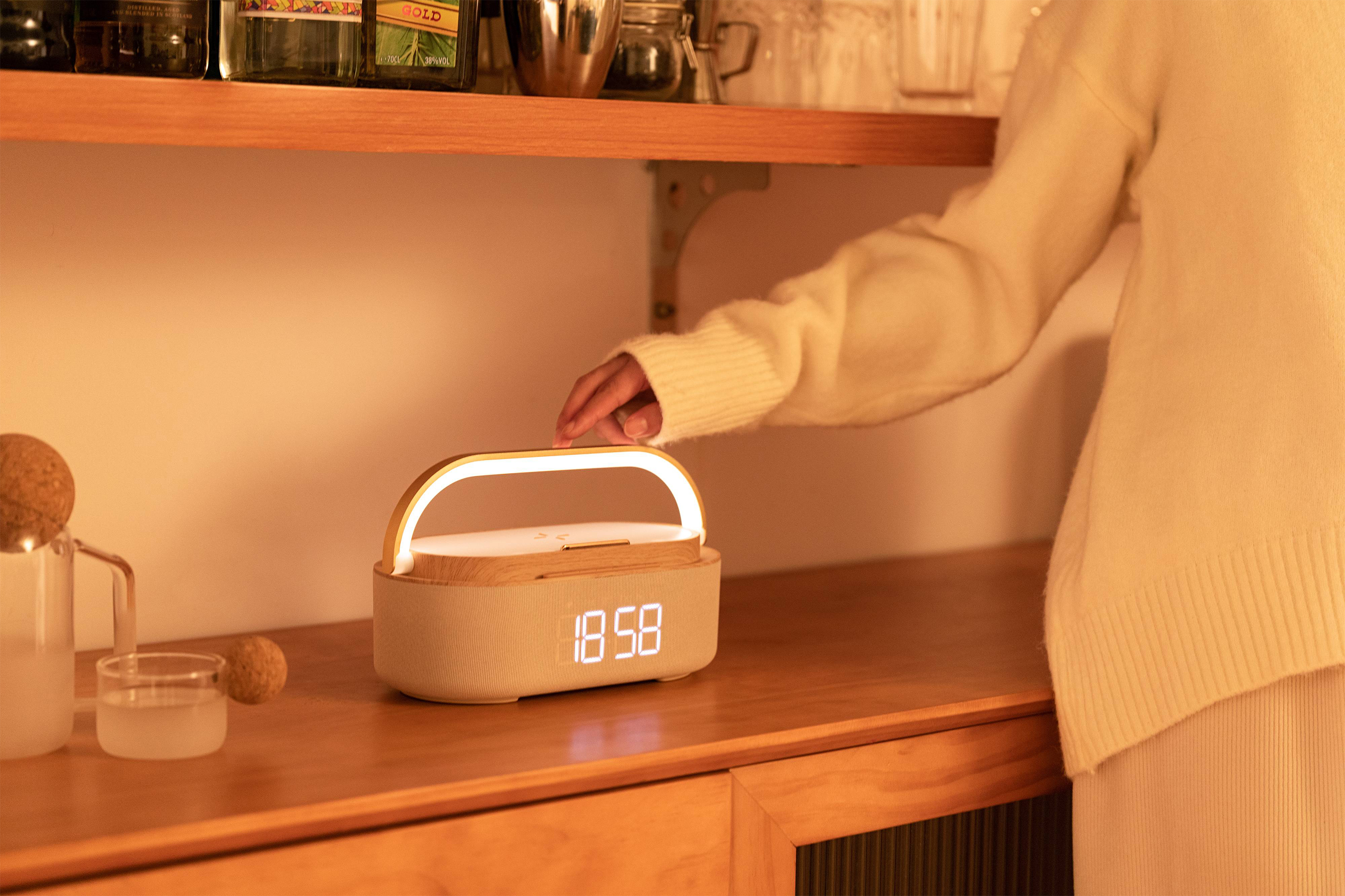 Bluetooth стерео-колонка "Smart Band" 10Вт (2х5Вт) с беспроводным (15W) ЗУ, лампой, часами, FM радио