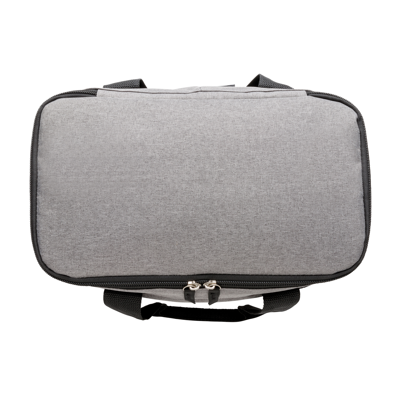 Объемная двухцветная сумка-холодильник из полиэстера 600D может вмещать до 20 банок. 1 передний карман и 2 боковых кармана-сетки.