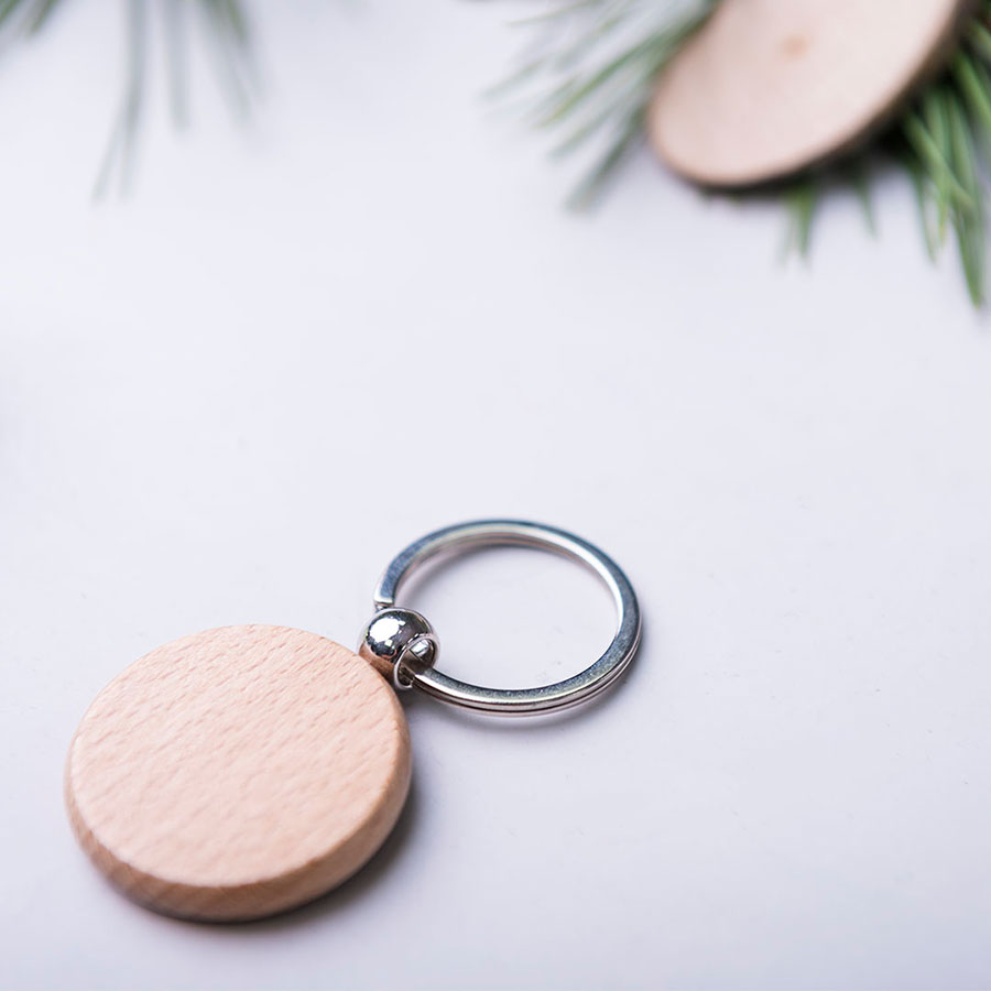Брелок из натурального бука. Размер d 3.9 x 0.7 см