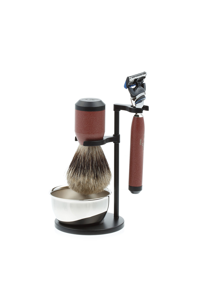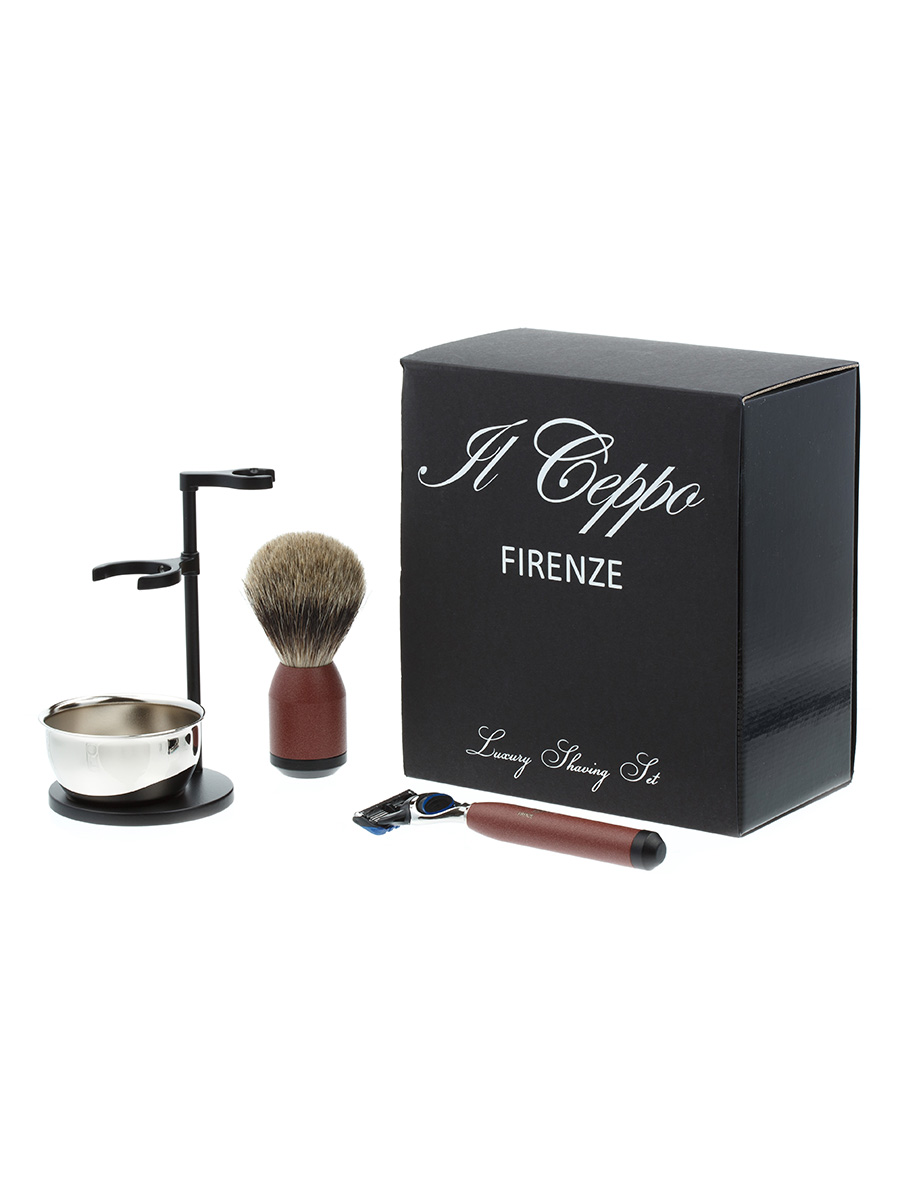 Бритвенный набор IL Ceppo: станок, помазок, чаша, подставка, красно-черный матовый цвет