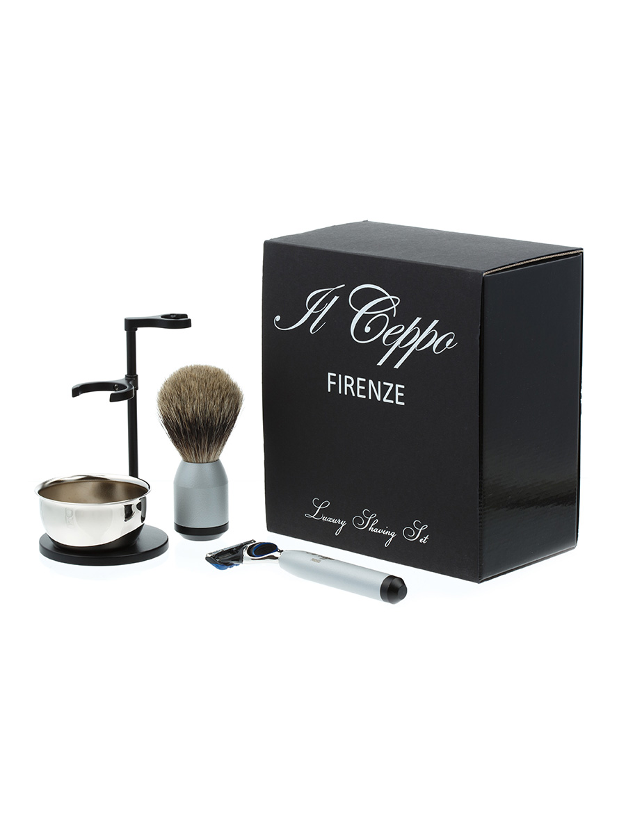Бритвенный набор IL Ceppo: станок, помазок, чаша, подставка, серебристо-черный матовый цвет