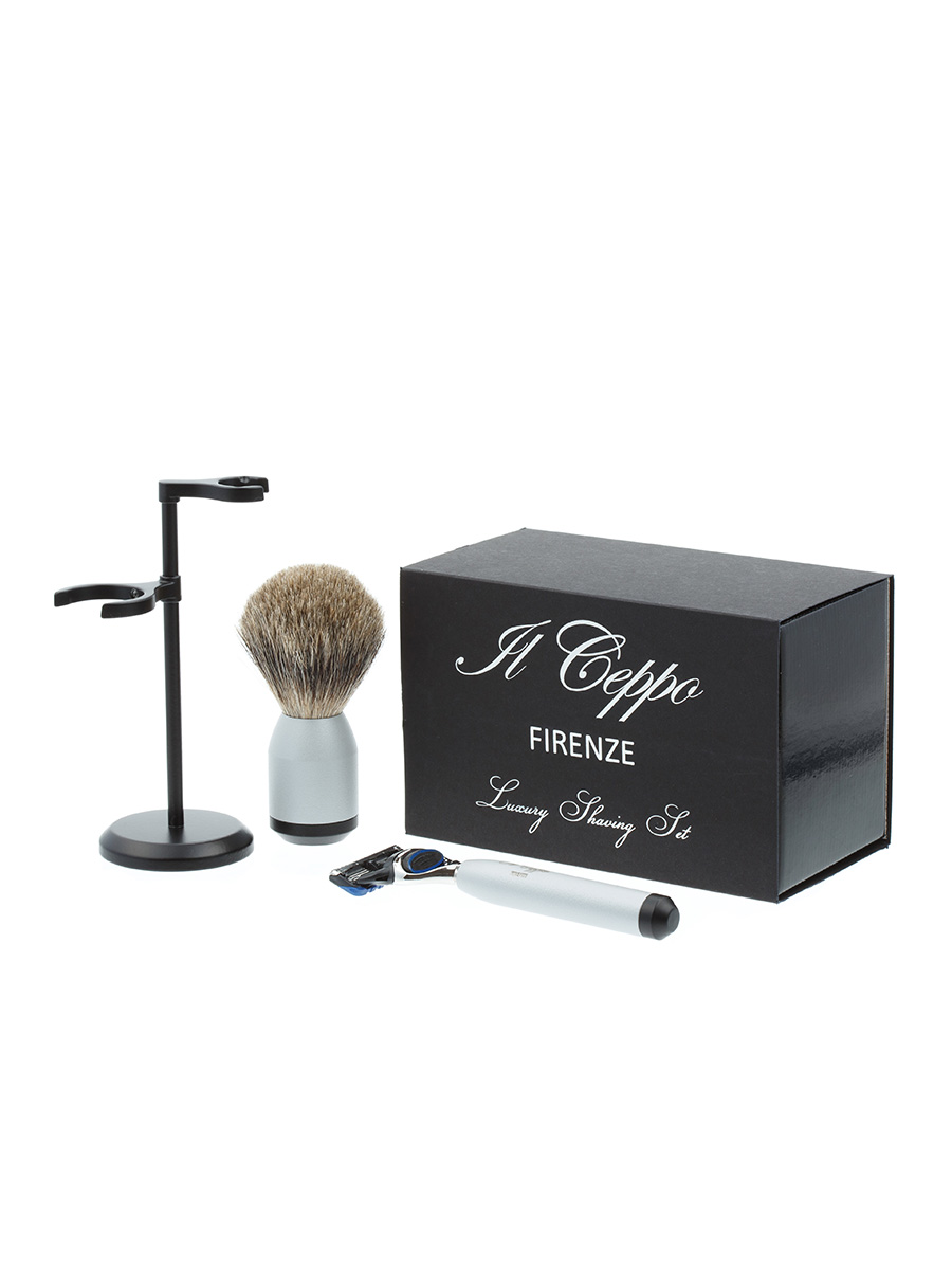 Бритвенный набор IL Ceppo: станок, помазок, подставка, серебристо-черный матовый цвет