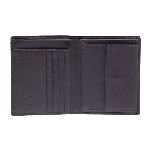 • Этот бумажник оснащен 4 отделениями для кредитных, дебетовых и остальных карт того же размера. Также он содержит 1 боковое и 1 вертикальное отделения для хранения фотографий, календарей и т.д. Отделение, разделенное на две секции, позволяет хранить банкноты в развернутом виде. Большой отдел для монет закрывается с помощью надежных заклепок.