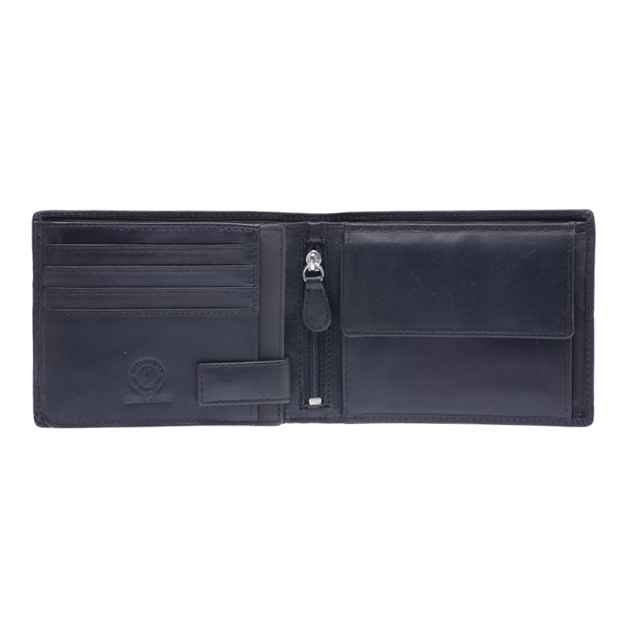 • Этот бумажник оснащен 8 отделениями для кредитных, дебетовых и остальных карт того же размера. Также он содержит 2 боковых отделения для хранения фотографий, календарей и т.д. Отделение, разделенное на две секции, позволяет хранить банкноты в развернутом виде. Большой отдел для монет закрывается с помощью надежных заклепок. Карман на молнии подходит для надежного размещения полезных мелочей.