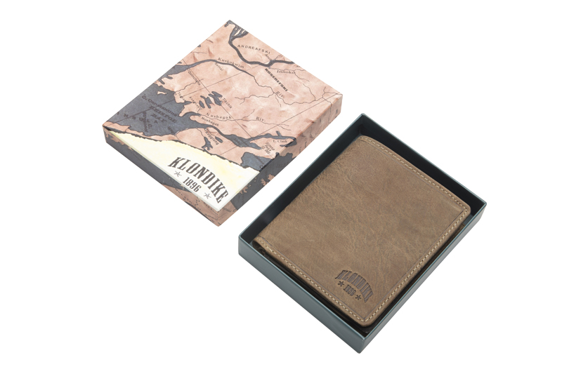 • Тиснение фирмы «Klondike» ненавязчиво нанесено на поверхность бумажника и придает ему стильный внешний вид. Этот бумажник станет Вам верным и долговечным спутником.