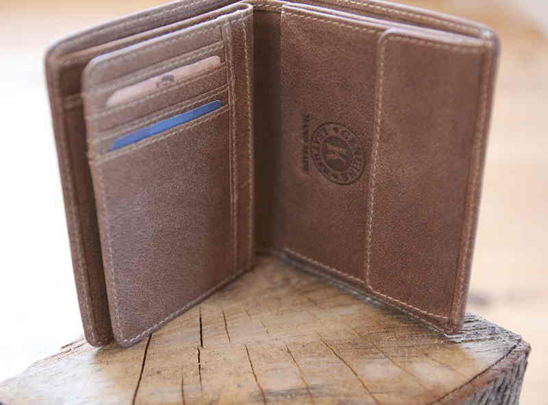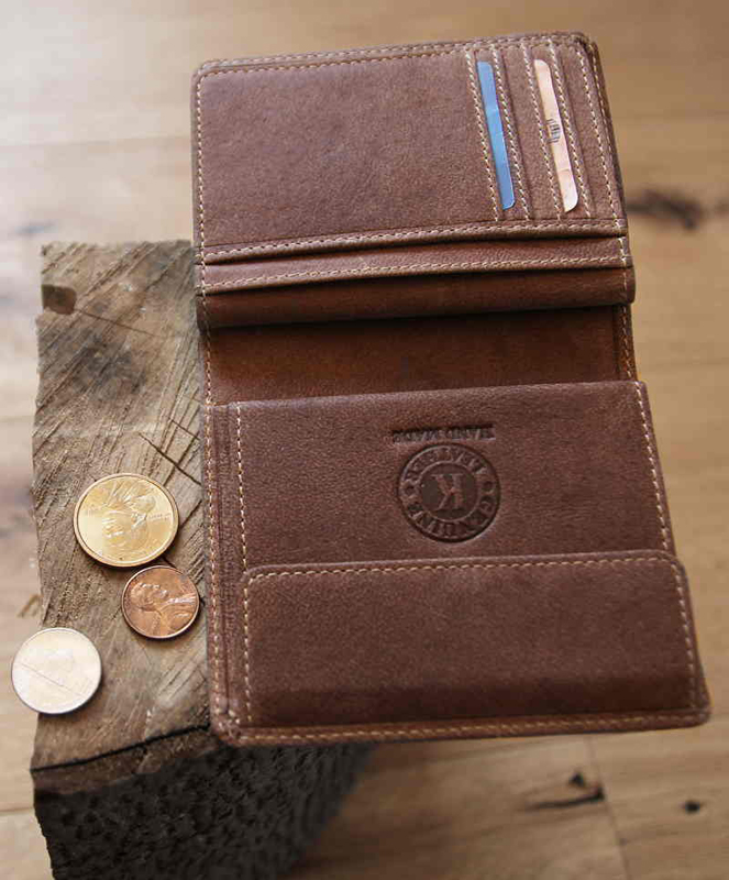 • Бумажник высочайшего качества фирмы «Klondike» сделан из натуральной кожи и обеспечивает безопасное хранение купюр, монет, кредитных карт, удостоверения личности и документов за счет удобных отделений.