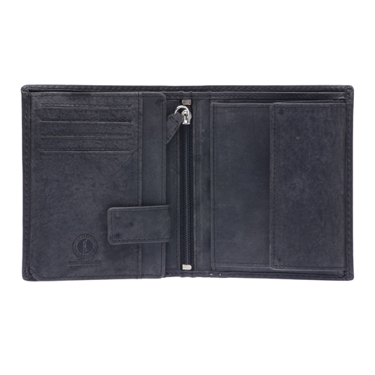 KLONDIKE 1896 ® Бумажник мужской серии «Yukon» | Высококачественная натуральная кожа в черном цвете | 8 отделений для кредитных карт, 3 боковых отделения, 1 вертикальное отделение, 2 отделения для купюр, 1 отделение полузакрытого типа, 1 отделение для монет | Бумажник