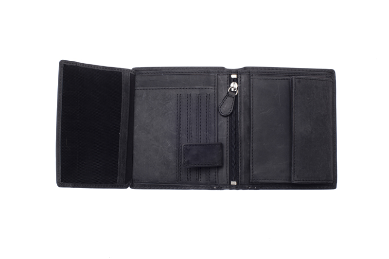 • Благодаря своим размерам (ширина – около 10 см; высота – около 12,5 см), бумажник прекрасно уместится в кармане любых брюк.