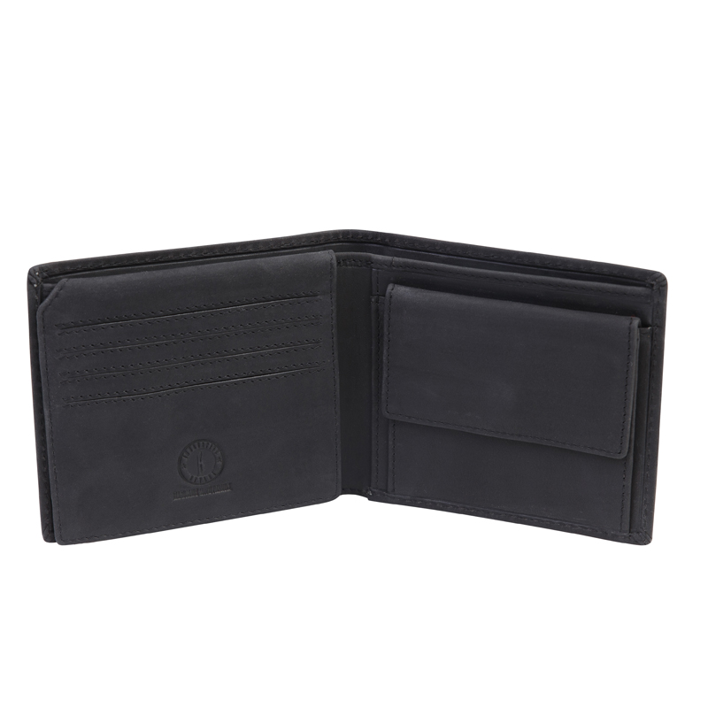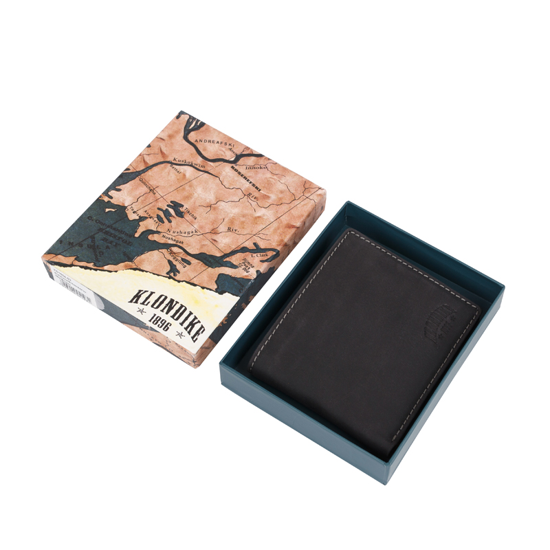 • Бумажник высочайшего качества фирмы «Klondike» сделан из натуральной кожи и обеспечивает безопасное хранение купюр, монет, кредитных карт, удостоверения личности и документов за счет удобных отделений.