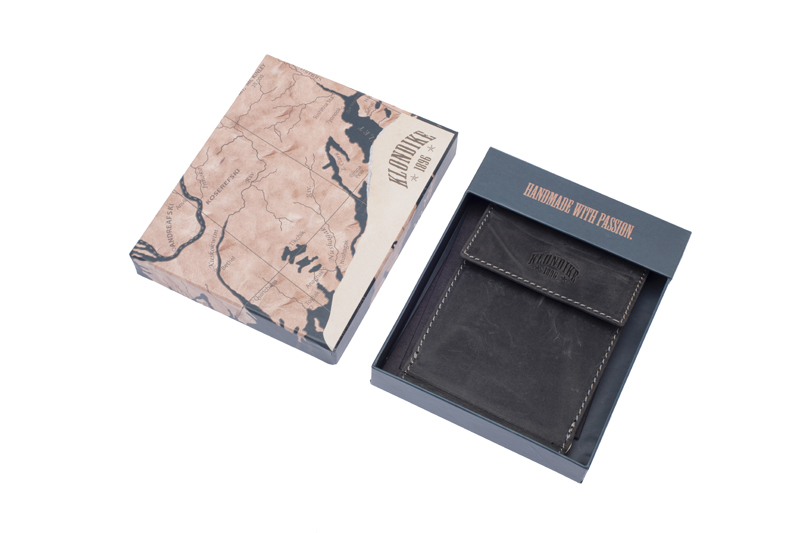 • Бумажник высочайшего качества фирмы «Klondike» сделан из натуральной кожи и обеспечивает безопасное хранение купюр, монет, кредитных карт, удостоверения личности и документов за счет удобных отделений.