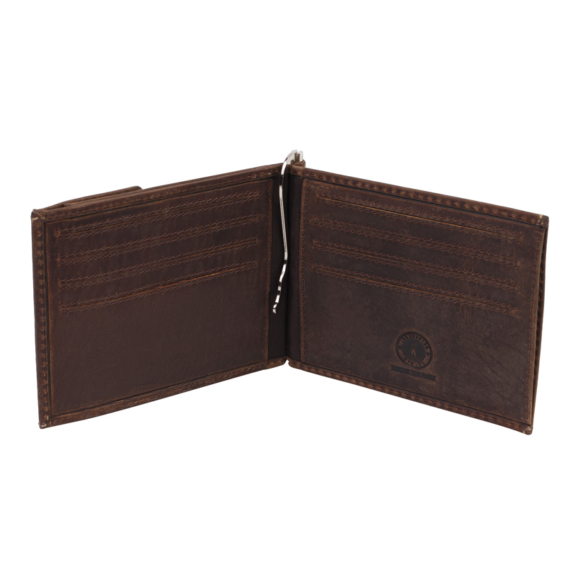 Бумажник KLONDIKE Yukon, с зажимом для денег, натуральная кожа в коричневом цвете, 12 х 1,5 х 9 см