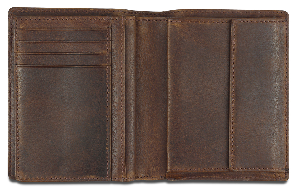 Бумажник изготовлен вручную из натуральной кожи буйвола, обеспечивает безопасное хранение купюр, кредитных карт и монет.