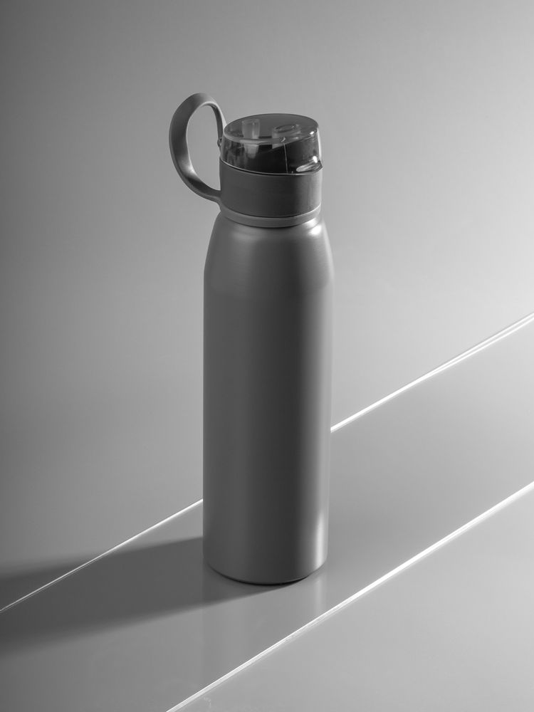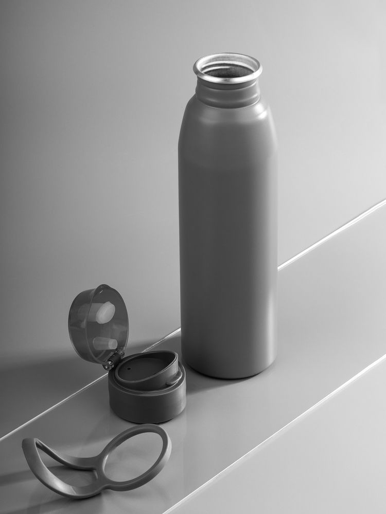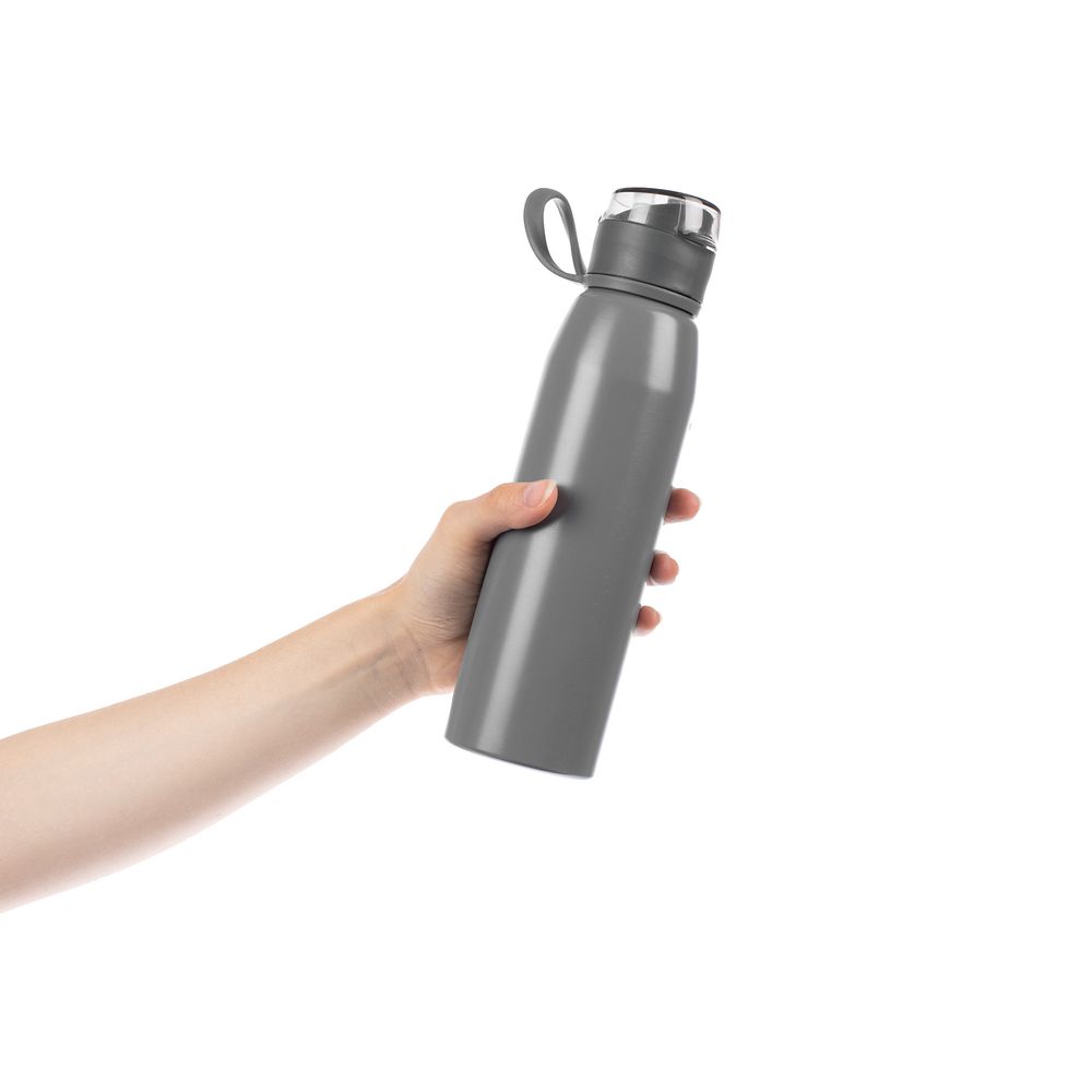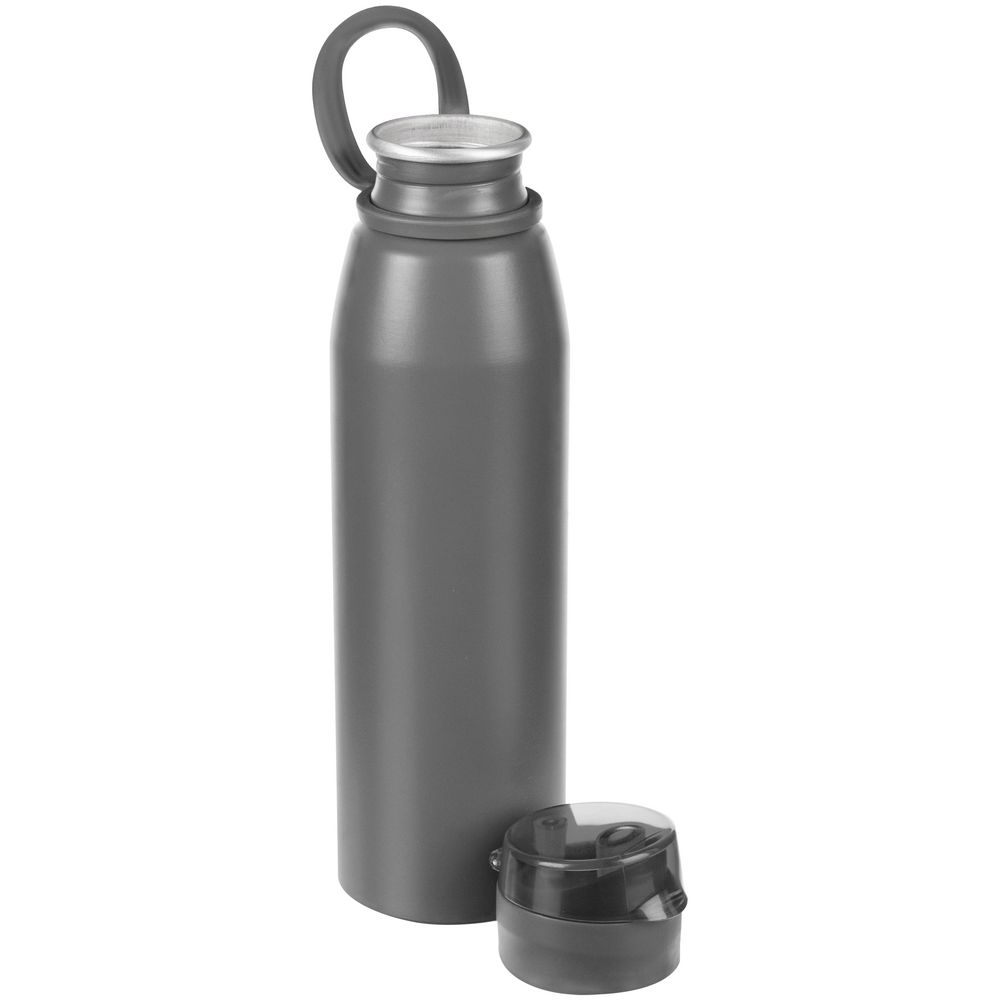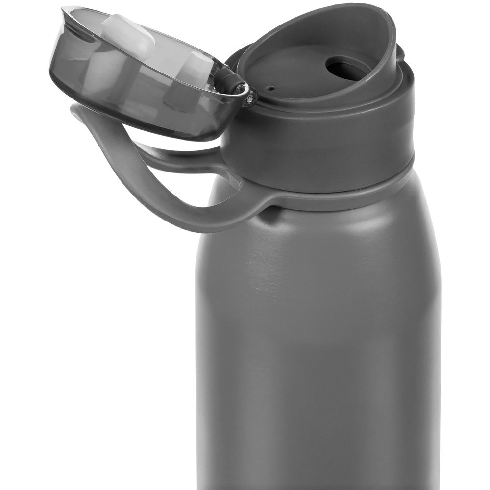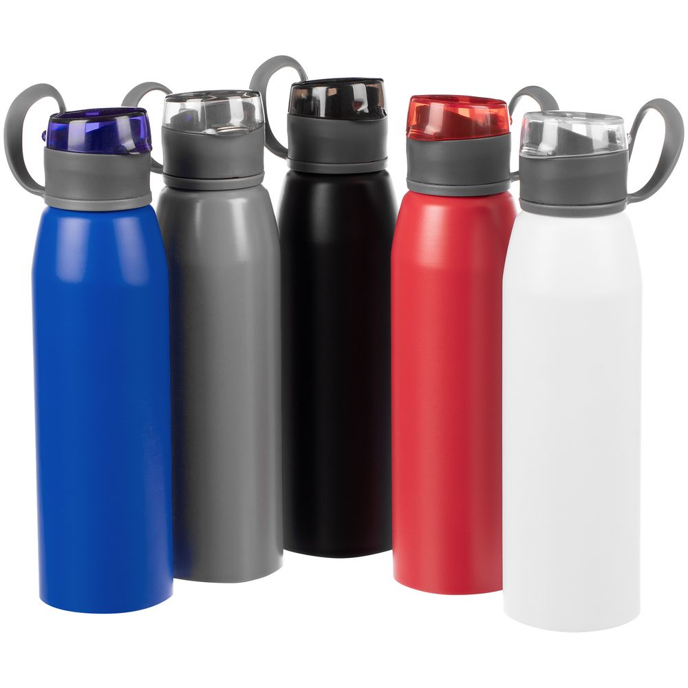 Легкая бутылка для спорта с откидной крышкой и силиконовой петлей для транспортировки.