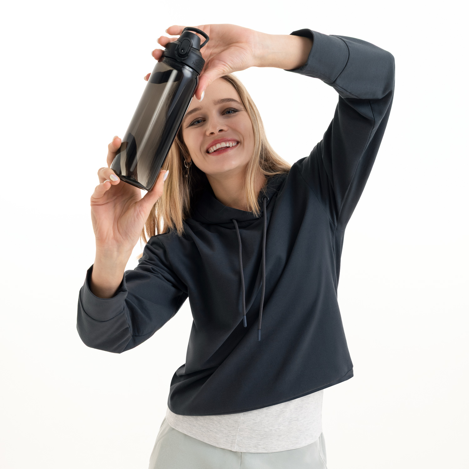 Благодаря широкому горлышку и встроенному ситечку-фильтру в бутылку можно добавлять различные ягоды или фрукты – кусочки не будут попадать в питьевое горлышко.—