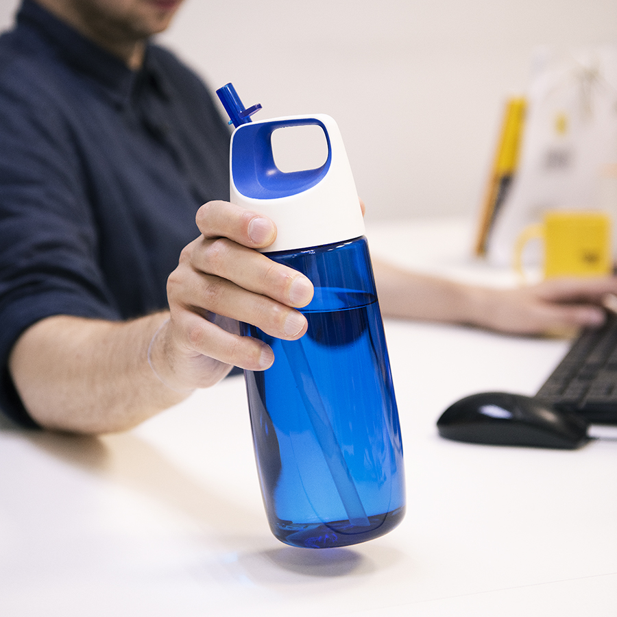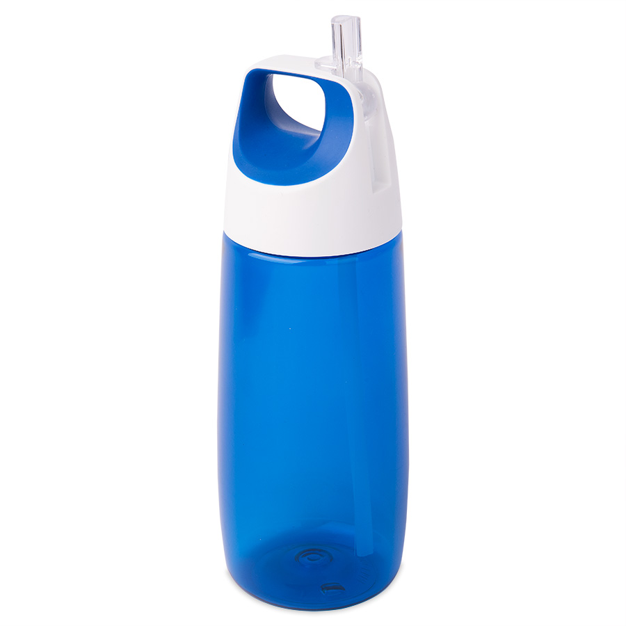 Бутылка с выдвигающейся трубочкой для питья и эргономичной крышкой для удобства переноски.