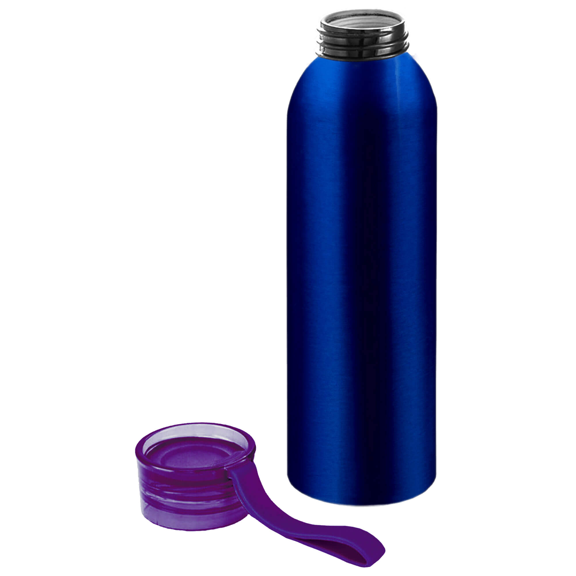 Алюминиевая матовая бутылка с пластиковой крышкой.