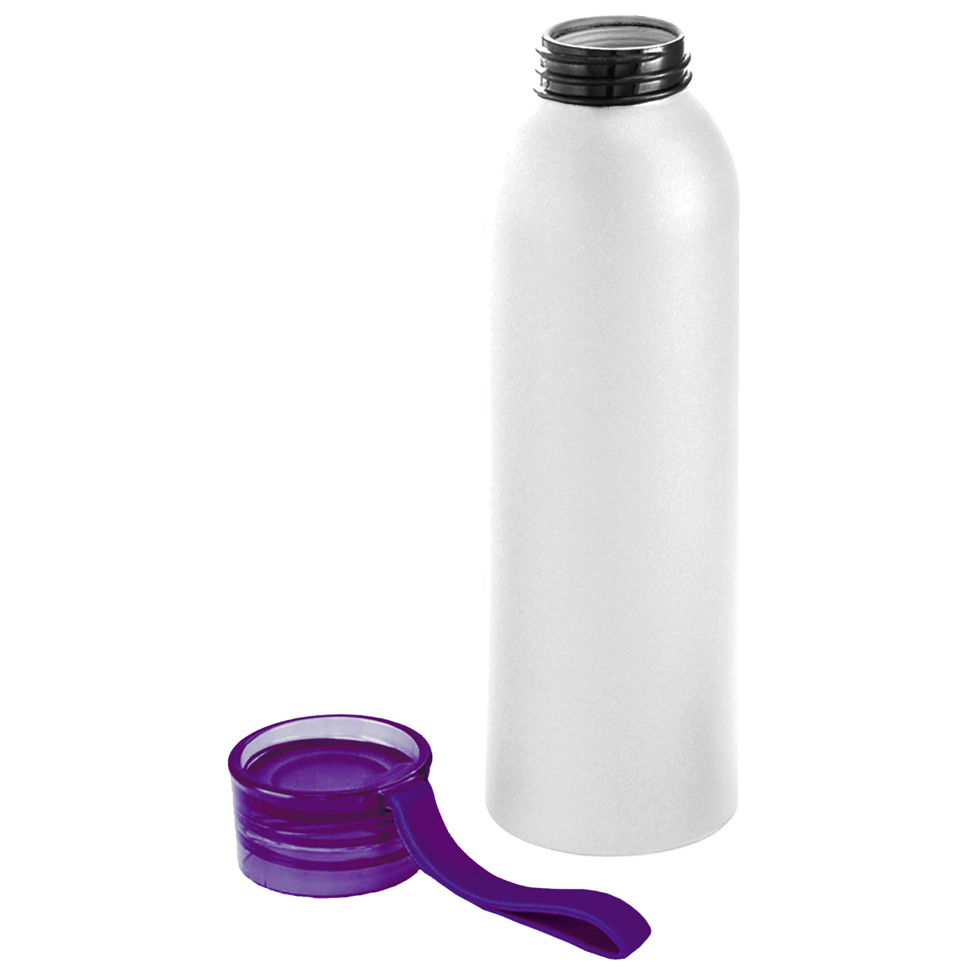 Алюминиевая матовая бутылка с пластиковой крышкой.