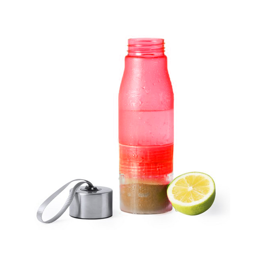 Бутылка выполнена из высококачественного пластика- тритана, без содержания ВРА. Включает отделение с соковыжималкой для цитрусов, чтобы придать аромат воде. С диспенсером, навинчивающейся металлической крышкой и удобной текстильной петлей для переноски. Поставляется в отдельной коробке. Преимущества тритана: -небьющийся - не имеет вкуса запаха - возможно мытье в посудомоечнорй машине Необходимо промыть в теплой проточной воде перед использованием.