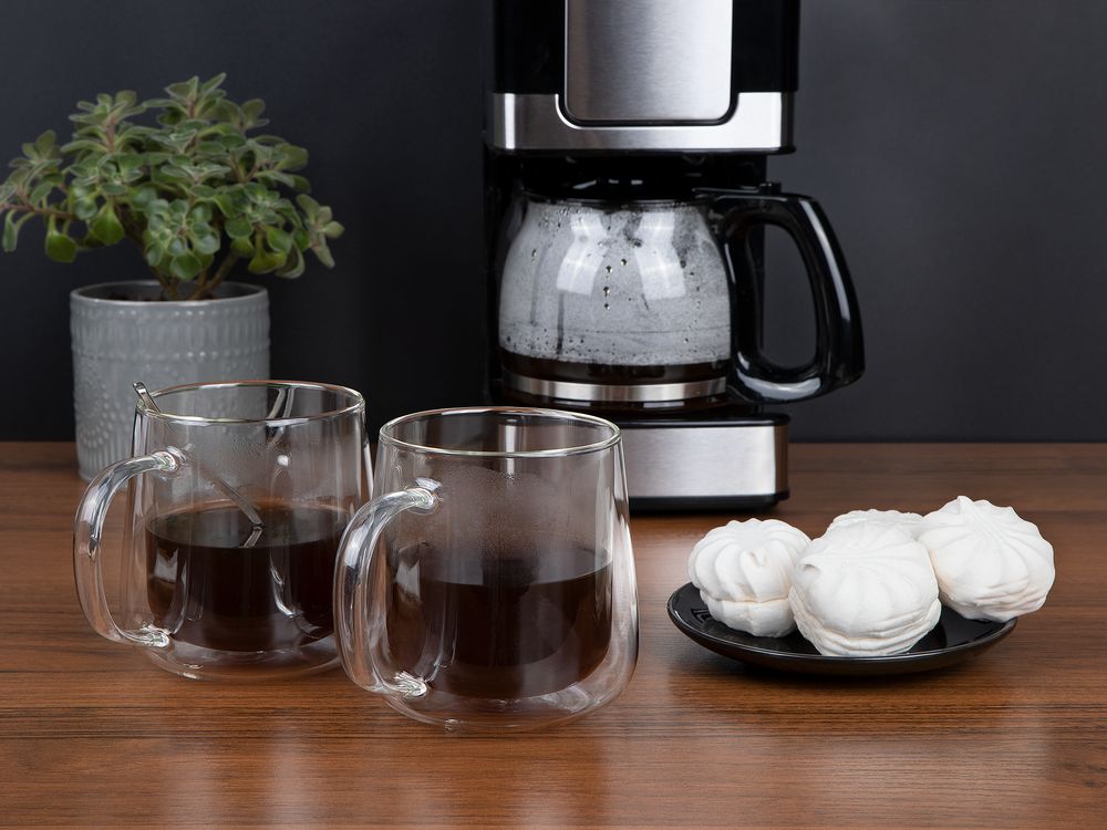 Зауженная сверху чашка Glass First производит впечатление очень аккуратной и совсем небольшой, но при этом точно понравится любителям больших кружек. Благодаря двойным стенкам из тонкого боросиликатного стекла кружка практически ничего не весит, отлично сохраняет тепло и вмещает целых 350 мл любимого напитка. Большая ручка удобно ложится даже в мужскую руку.