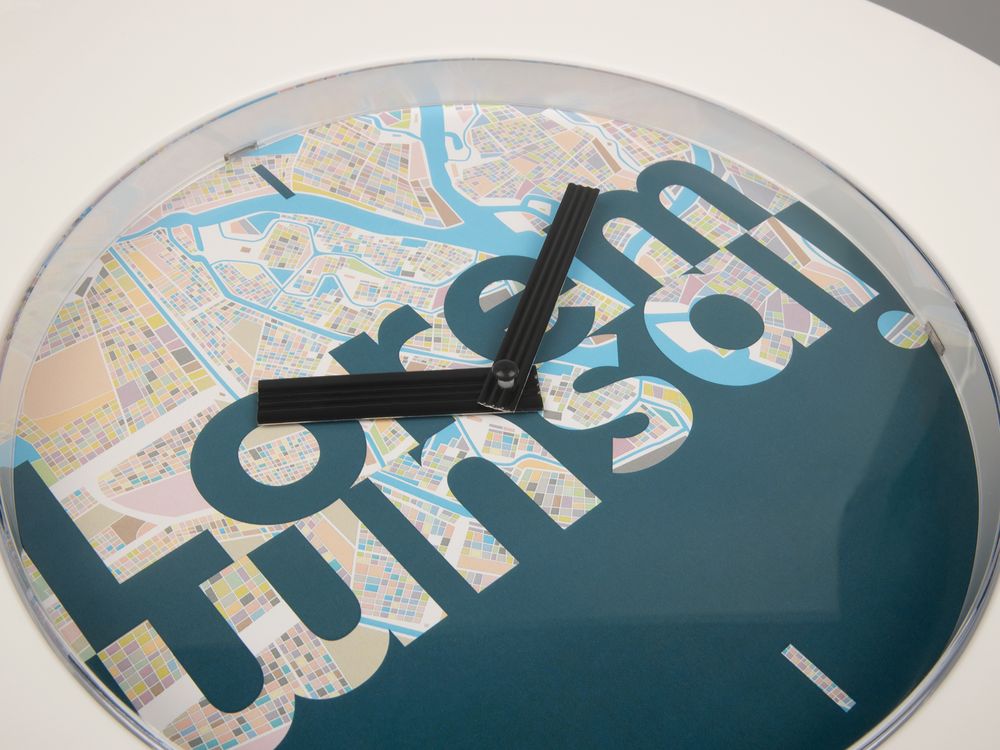 Часы Ronda — яркий акцент в помещении и важный элемент фирменного стиля компании.