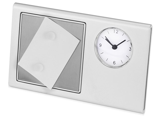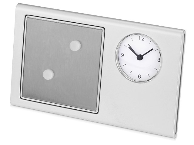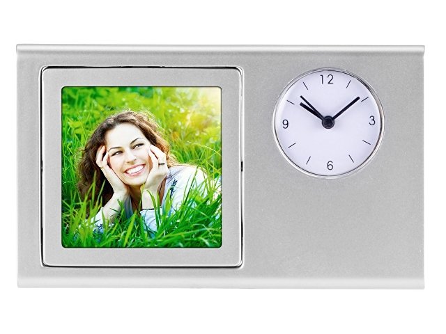 Настольные часы снабжены фоторамкой 6х6 см и магнитной доской на обороте, благодаря которой часы можно крепить к любой вертикальной металлической поверхности. Магнитную область можно также использовать в качестве держателя для канцелярских скрепок. Корпус часов имеет большую площадь для нанесения изображения. Тампопечать (1 цвет (цветные изделия)) на данный товар осуществляется бесплатно. Оплачивается только настройка оборудования в размере 4500 рублей на весь тираж.