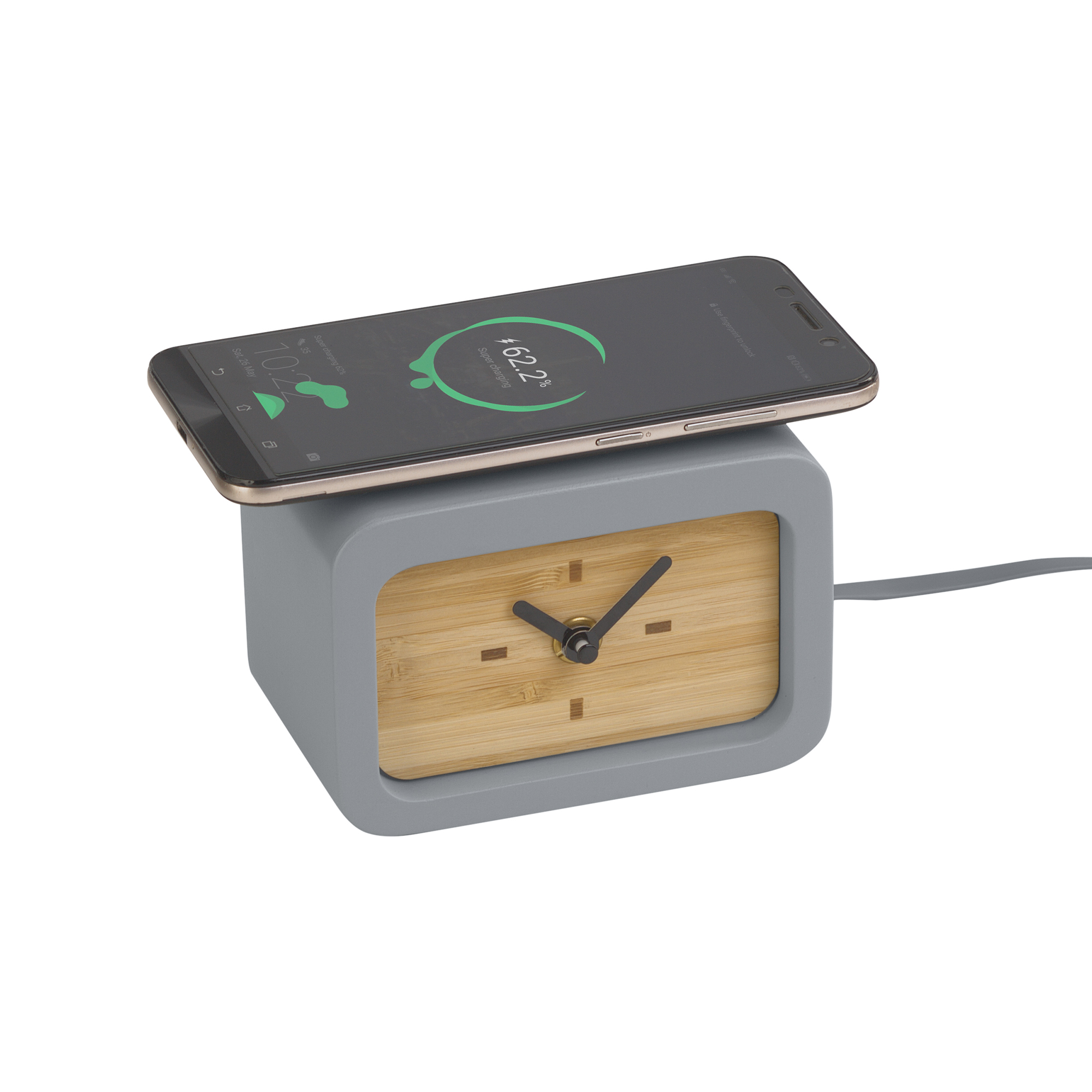 Часы "Stonehenge" с беспроводным зарядным устройством, камень/бамбук